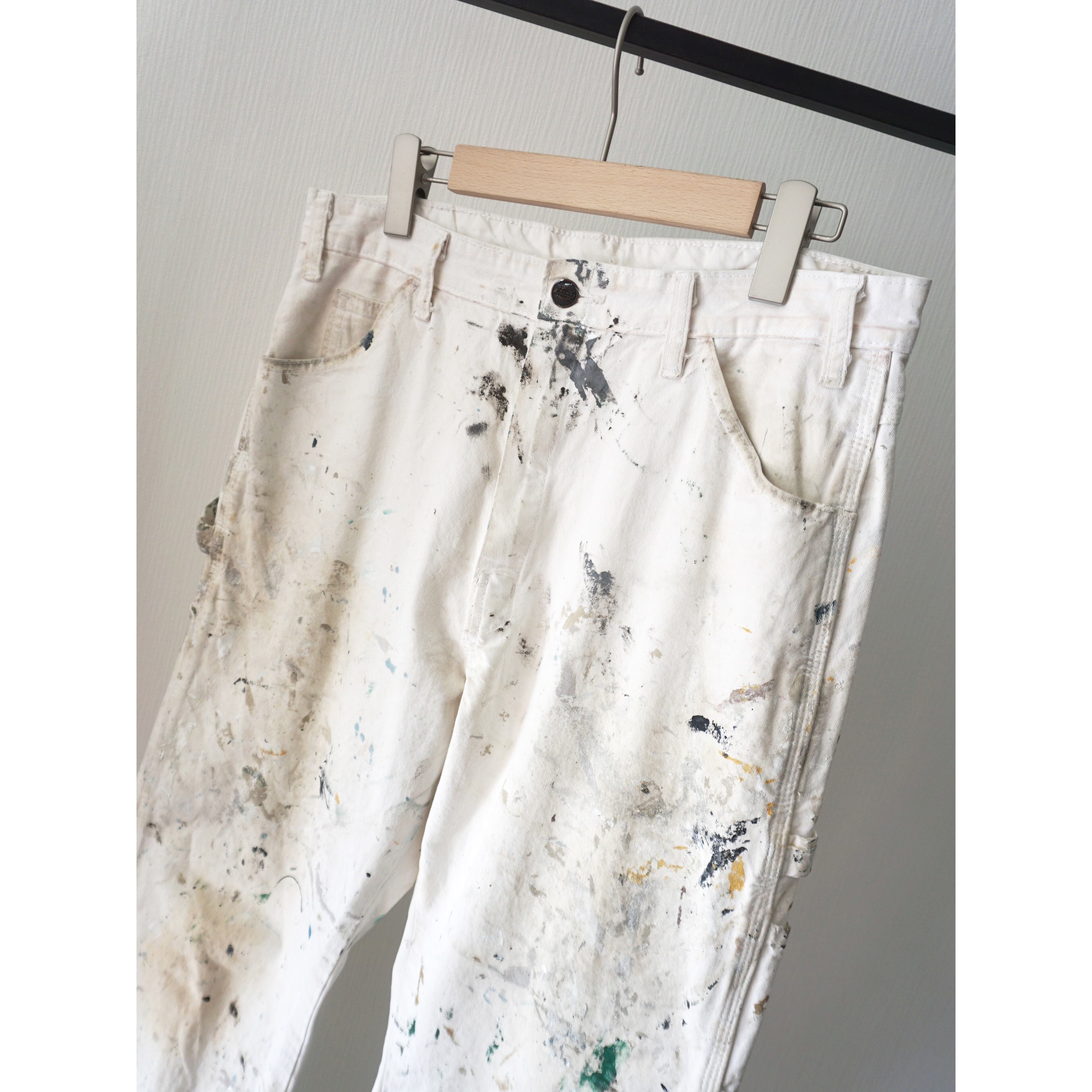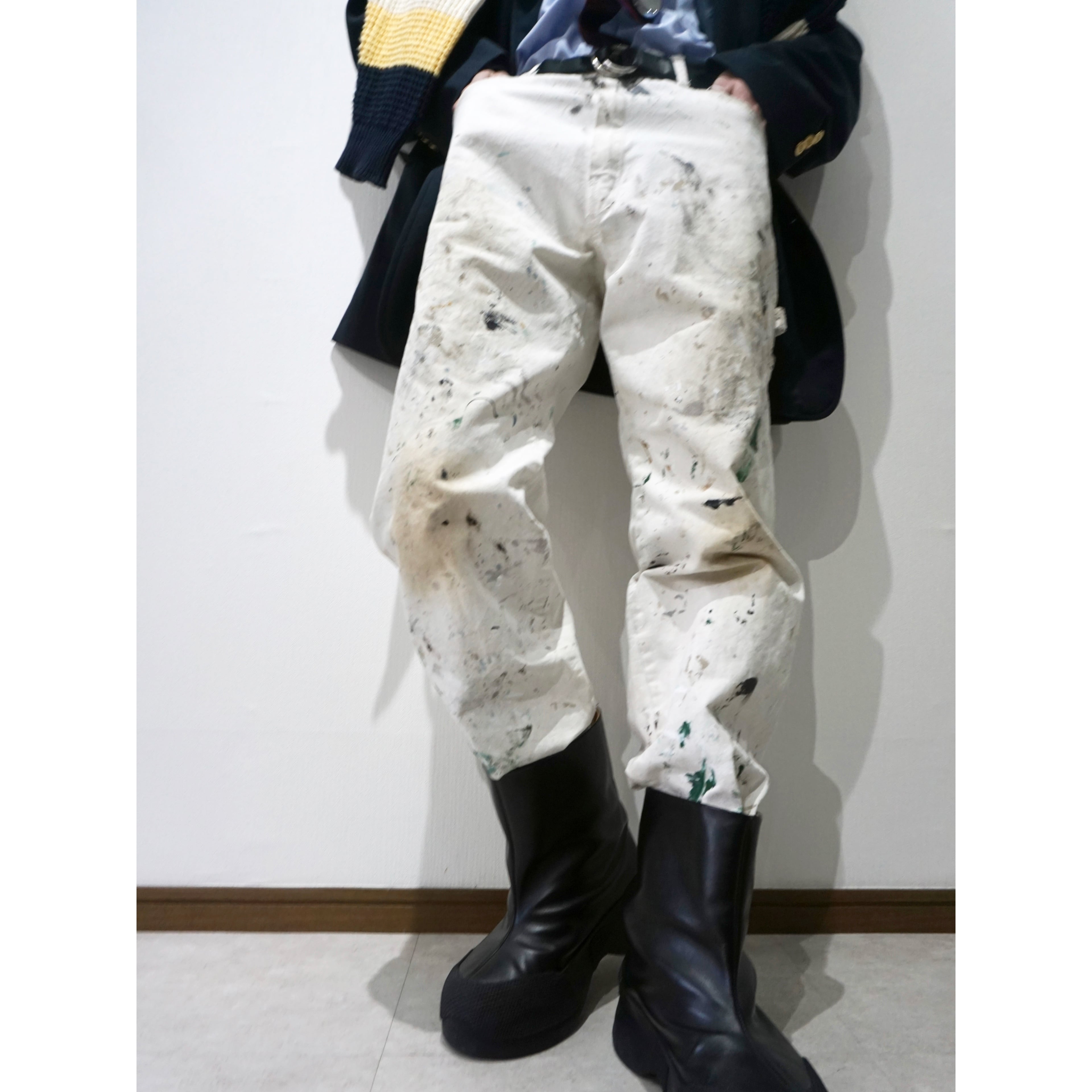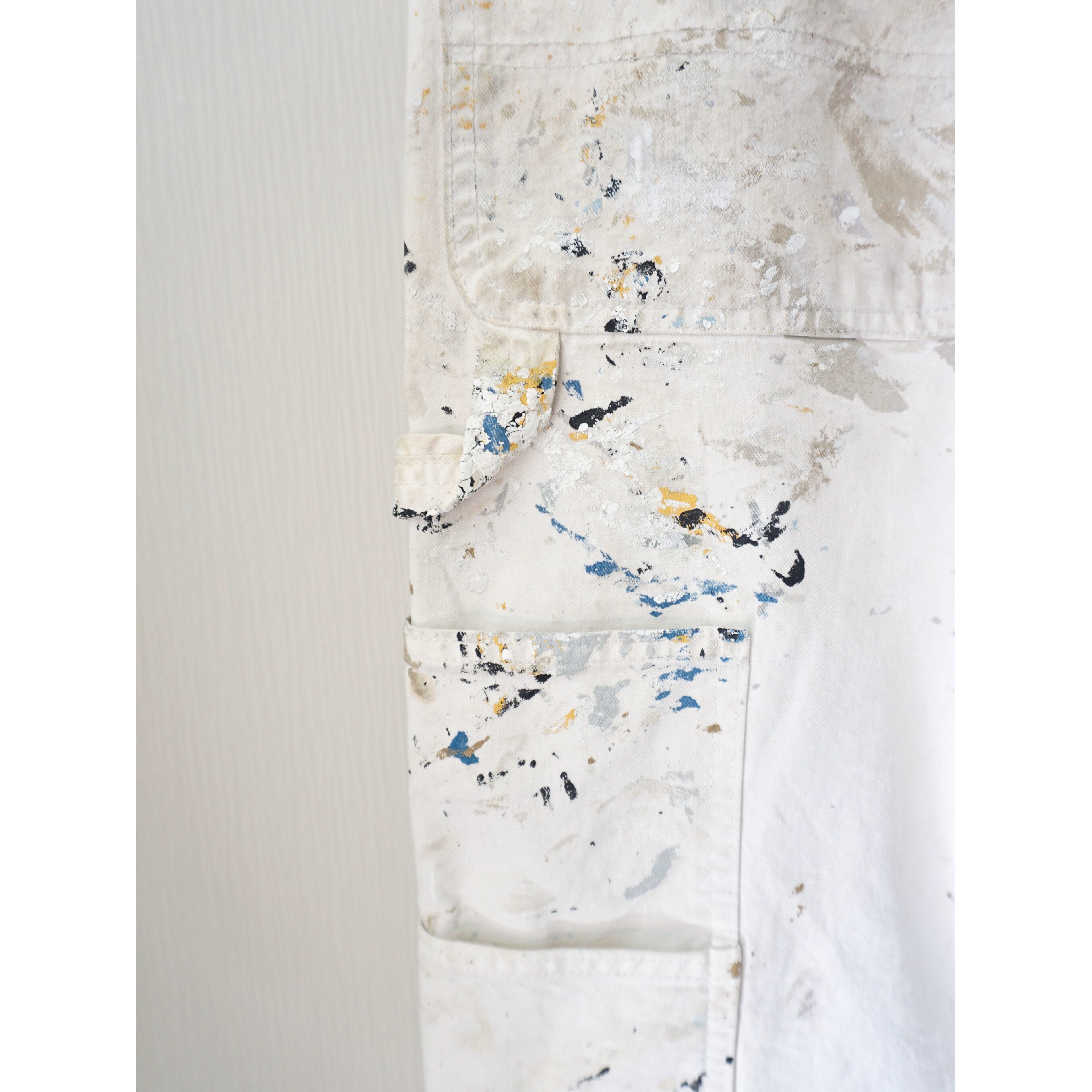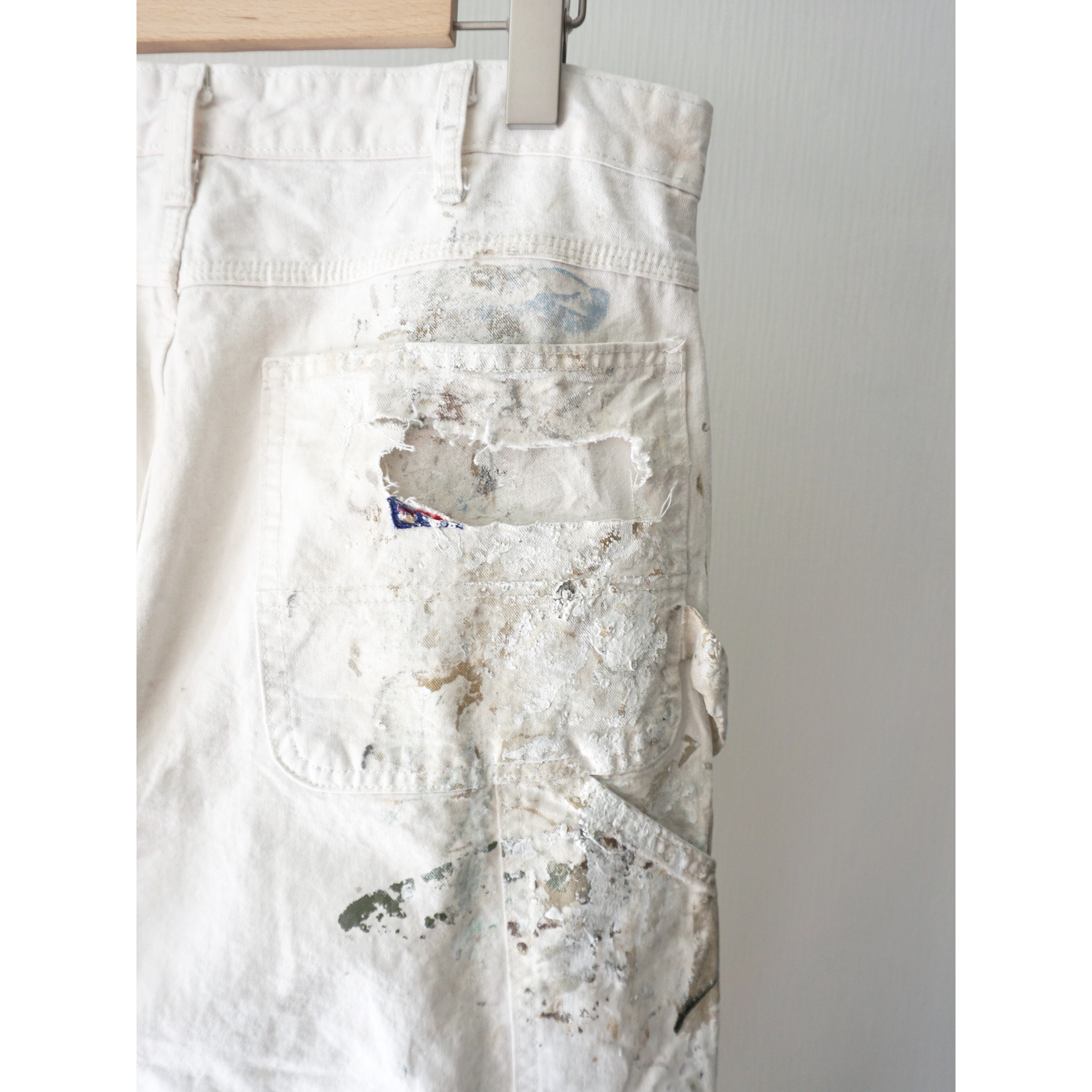 古着ワーク製品特有の激しいペンキ飛び、ダメージ、全体的な使用感がございます。どれも製品特有の風合いとしてご理解ある方のみご注文お願いいたします