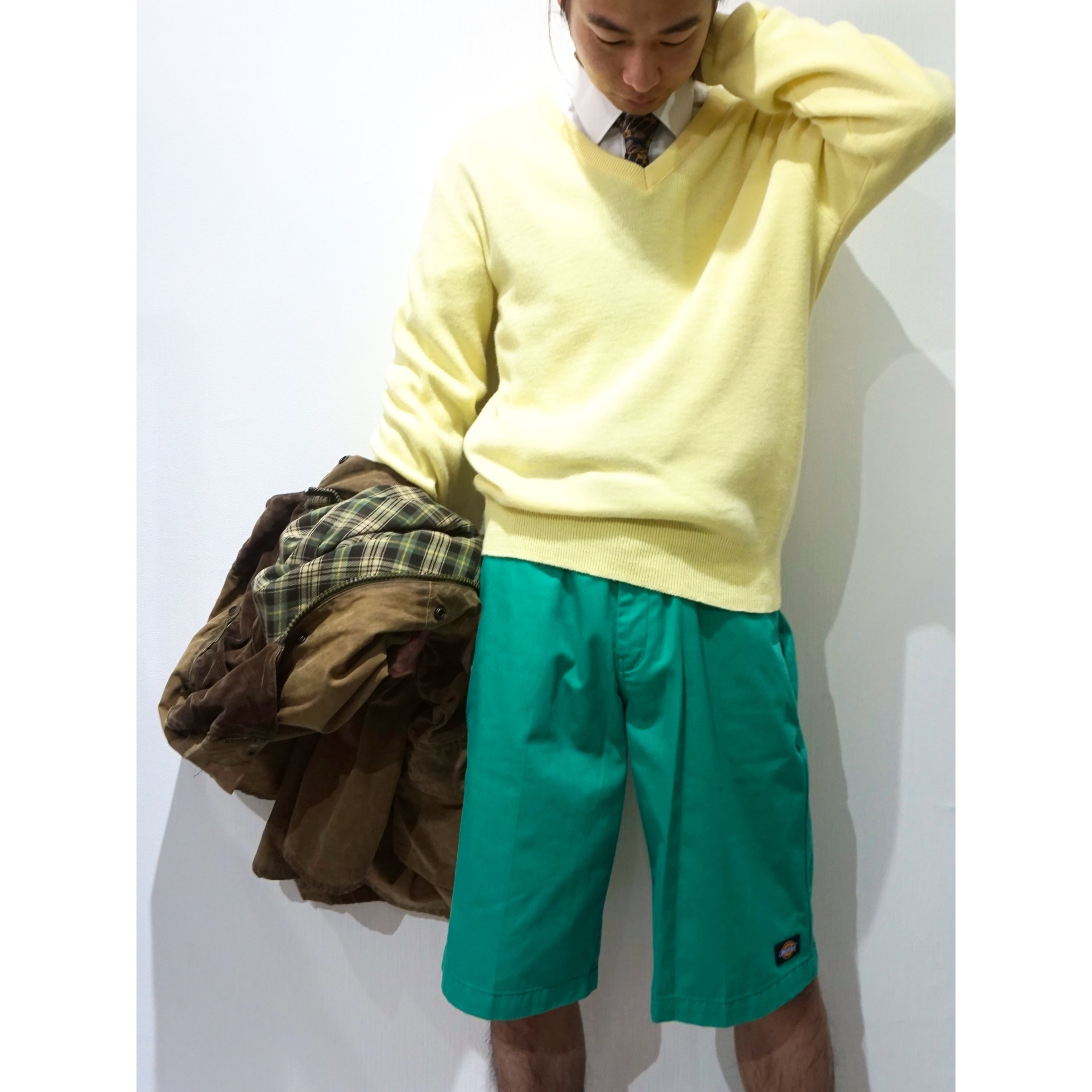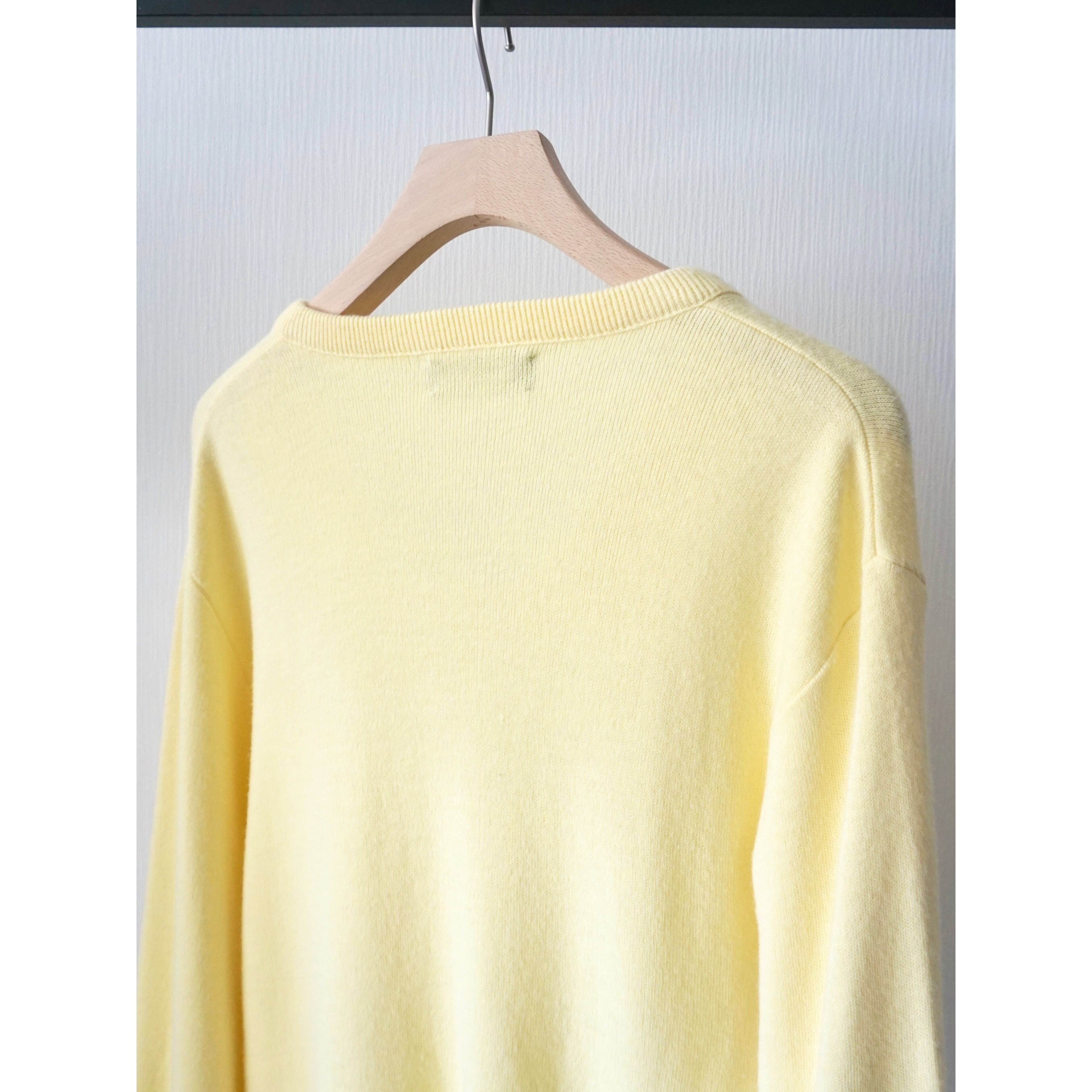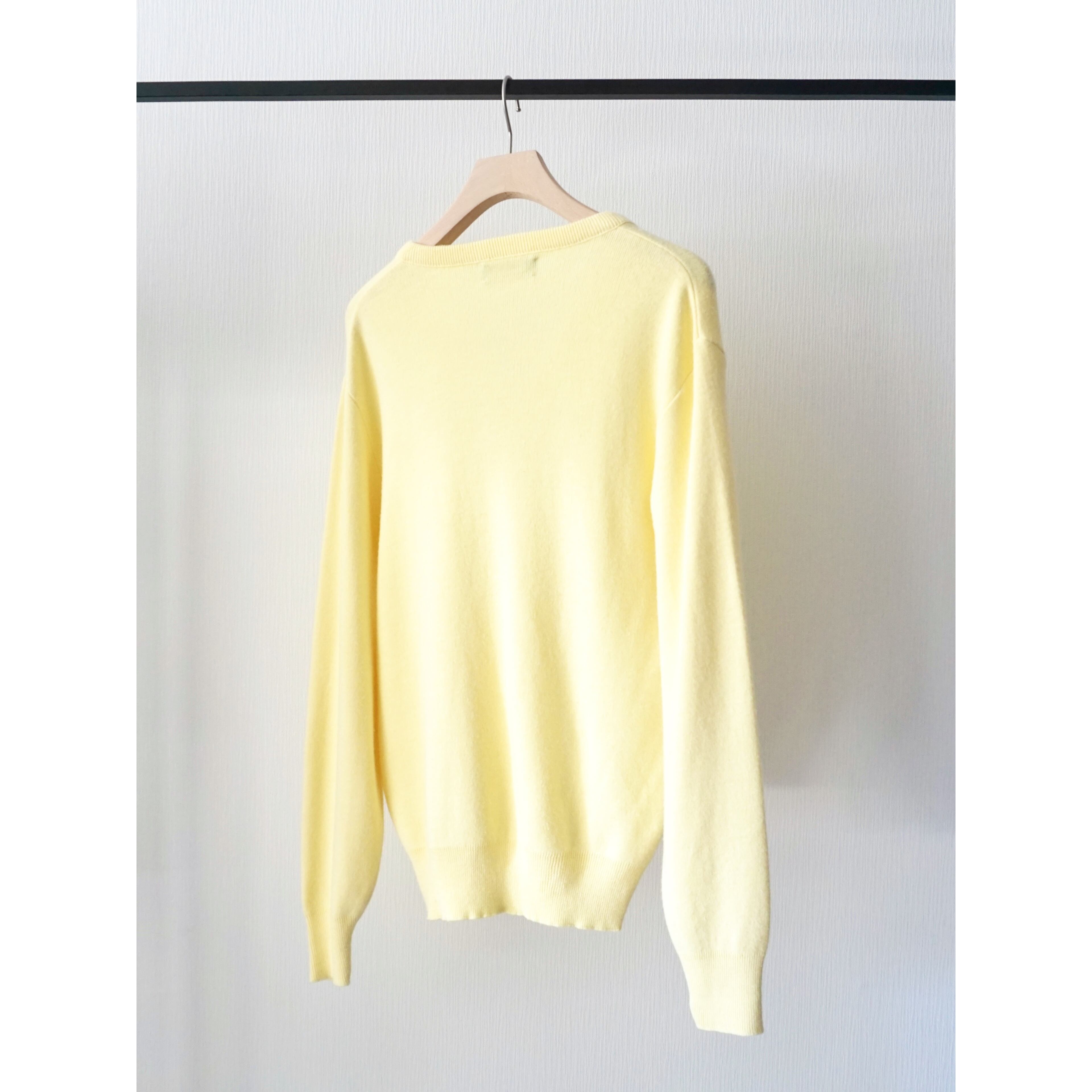 1980s vintage "PURITAN" pastel yellow color v-neck knit sweater made in USA