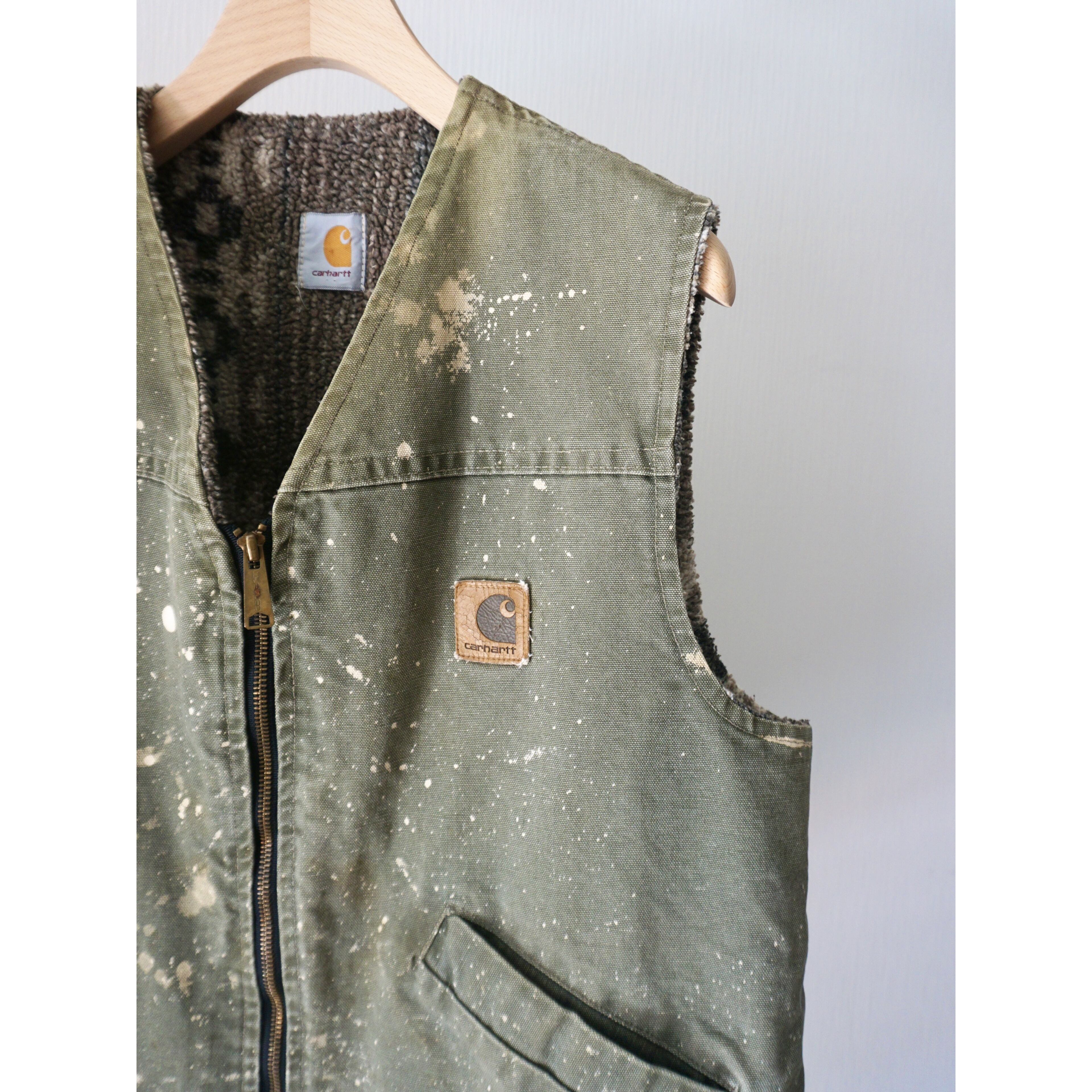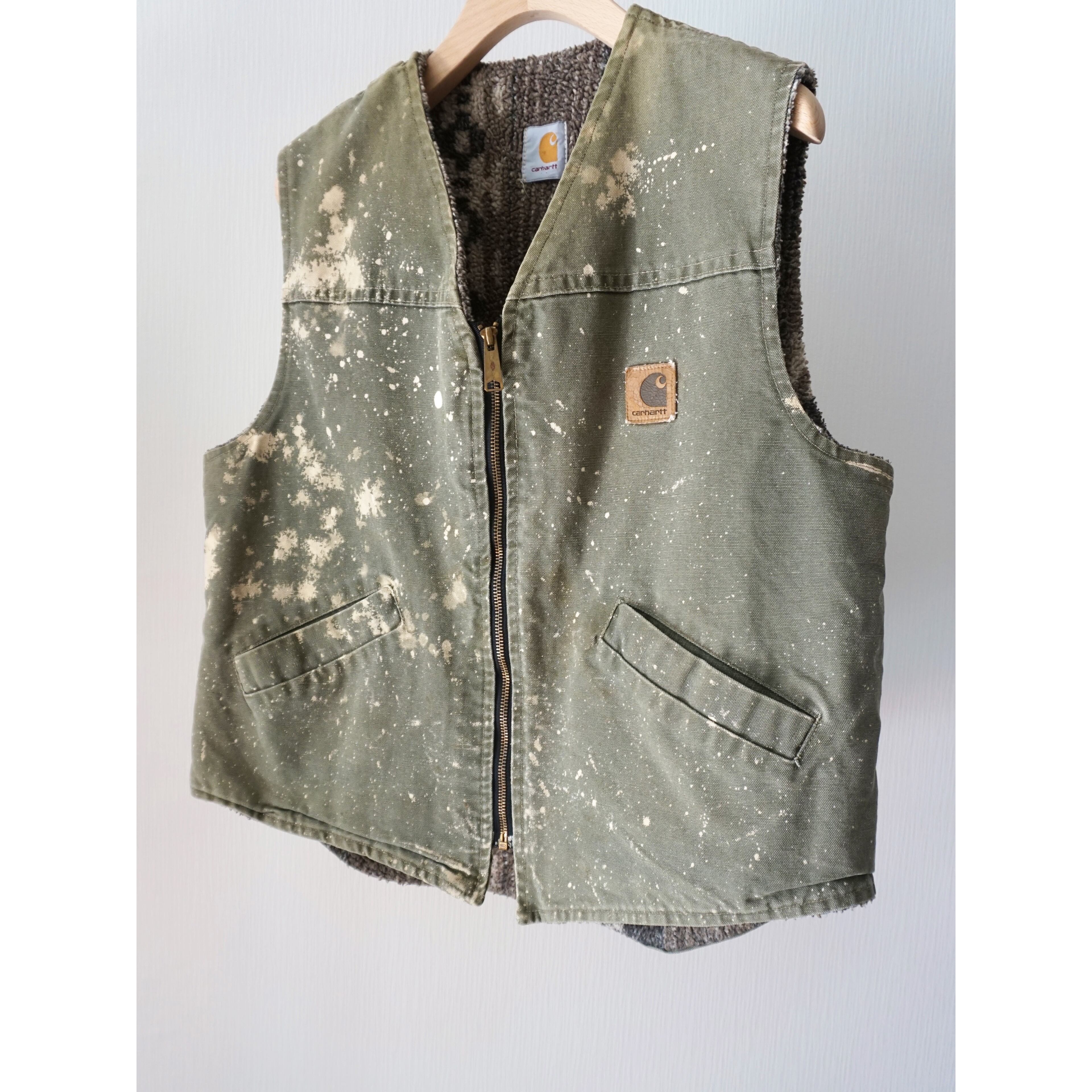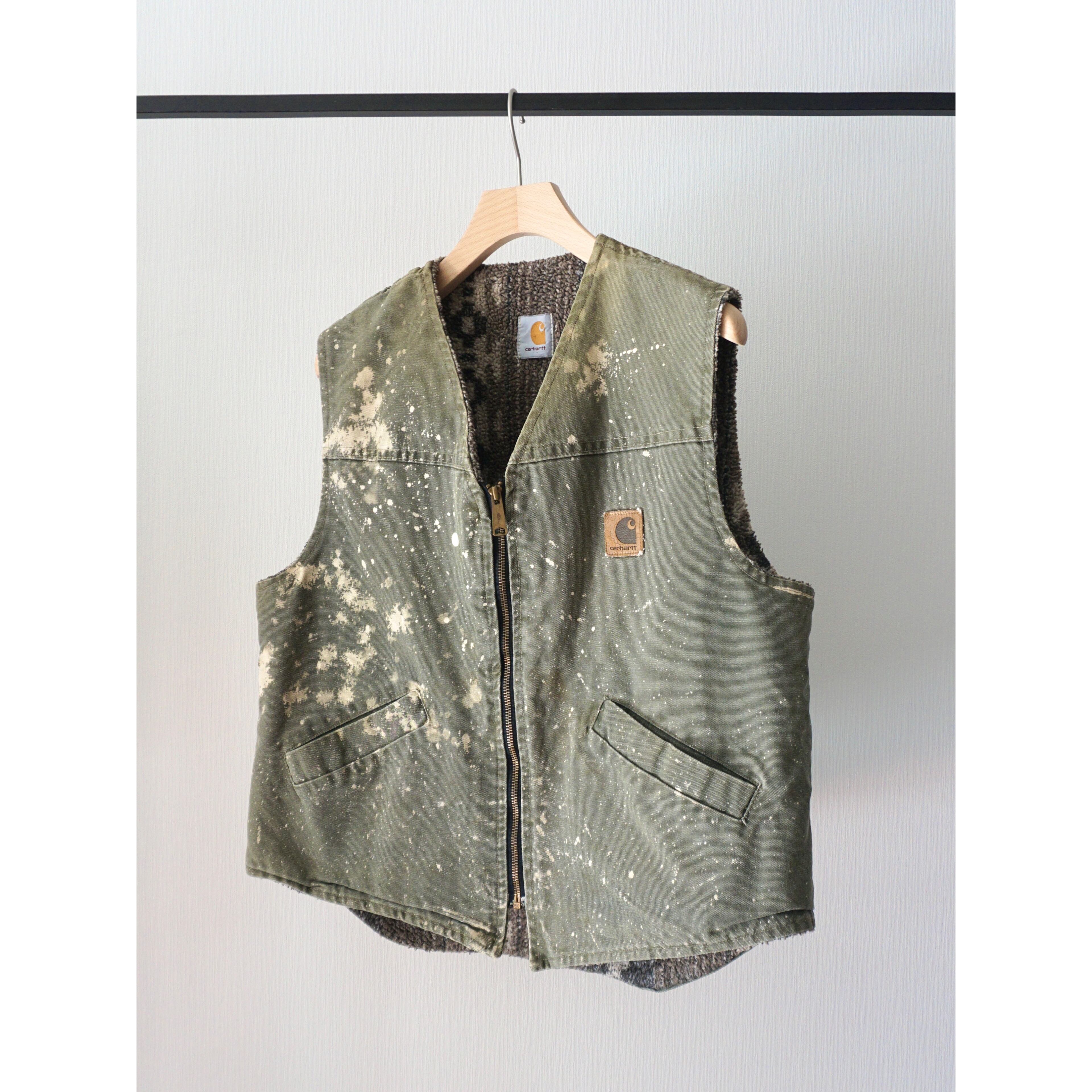 古着ワーク製品特有のフェード跡、ブリーチ跡等ございます。どれも製品特有の風合いとしてご理解ある方のみご注文お願いいたします