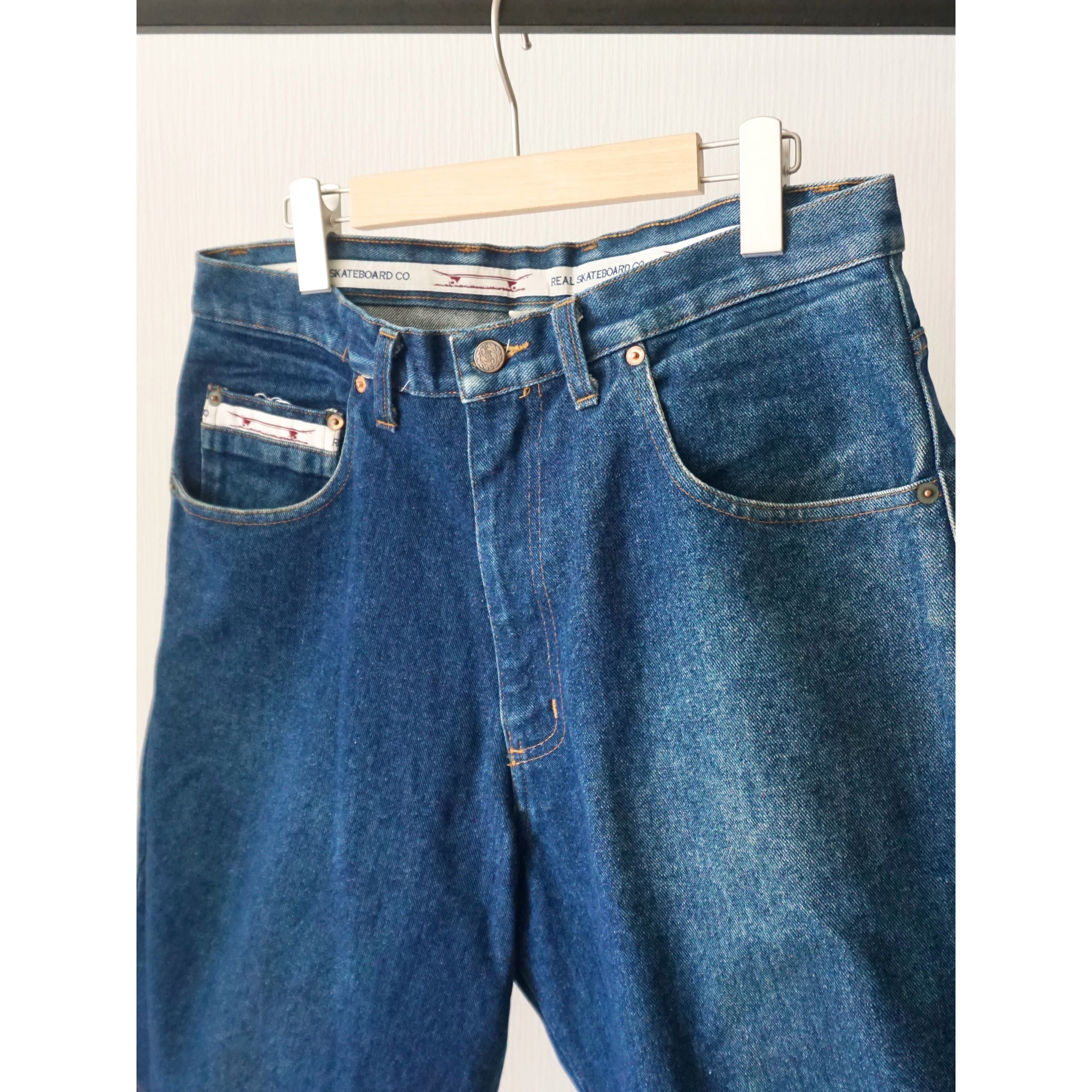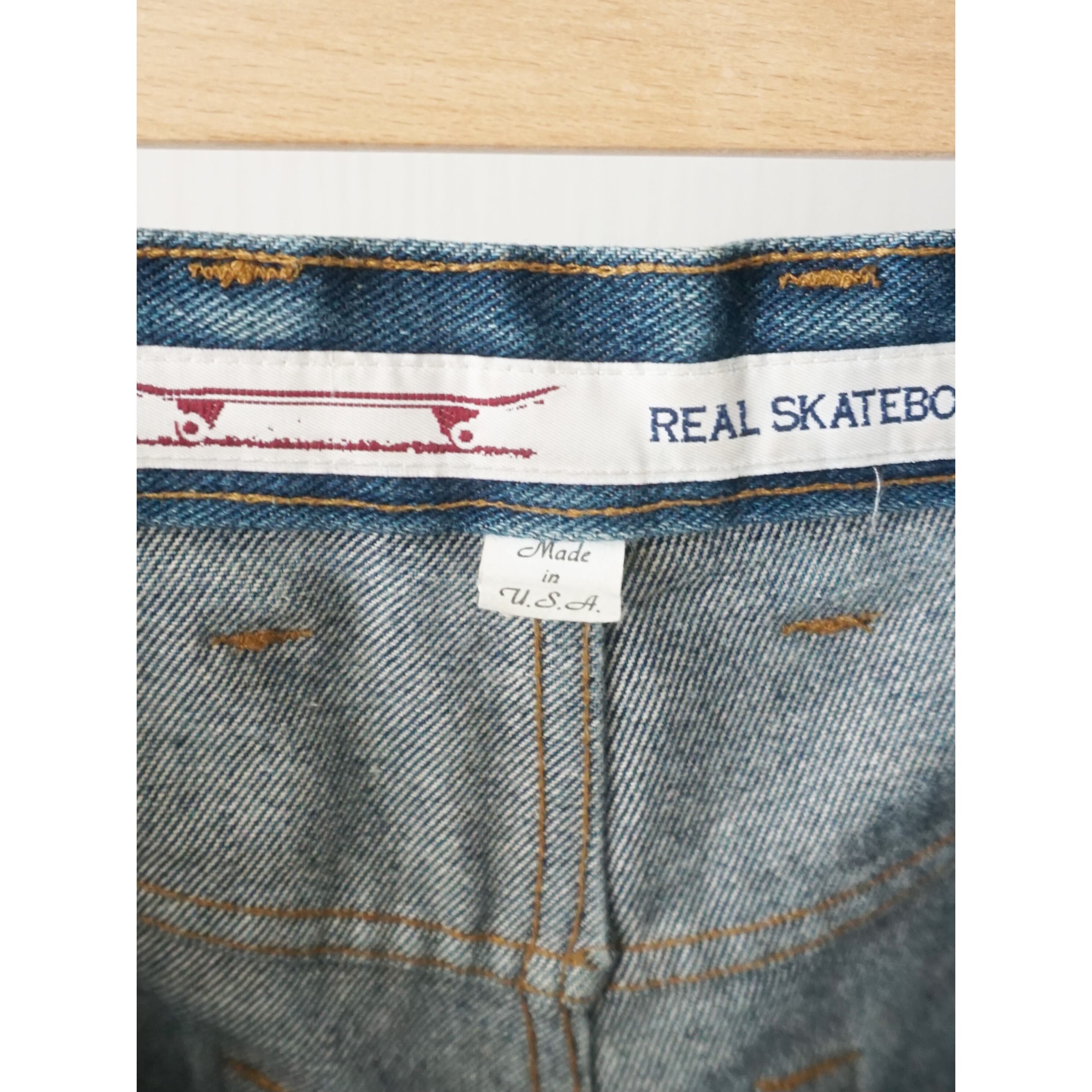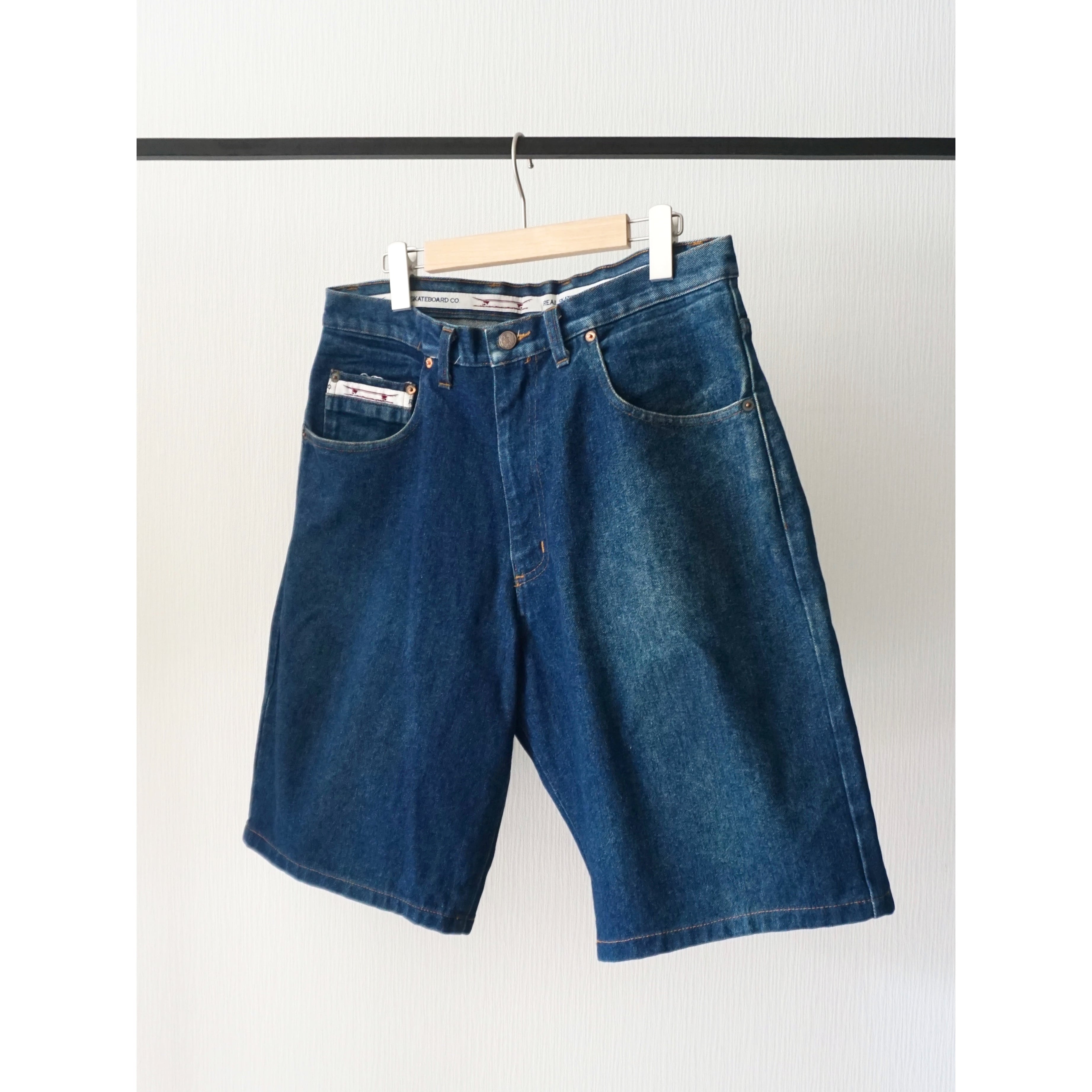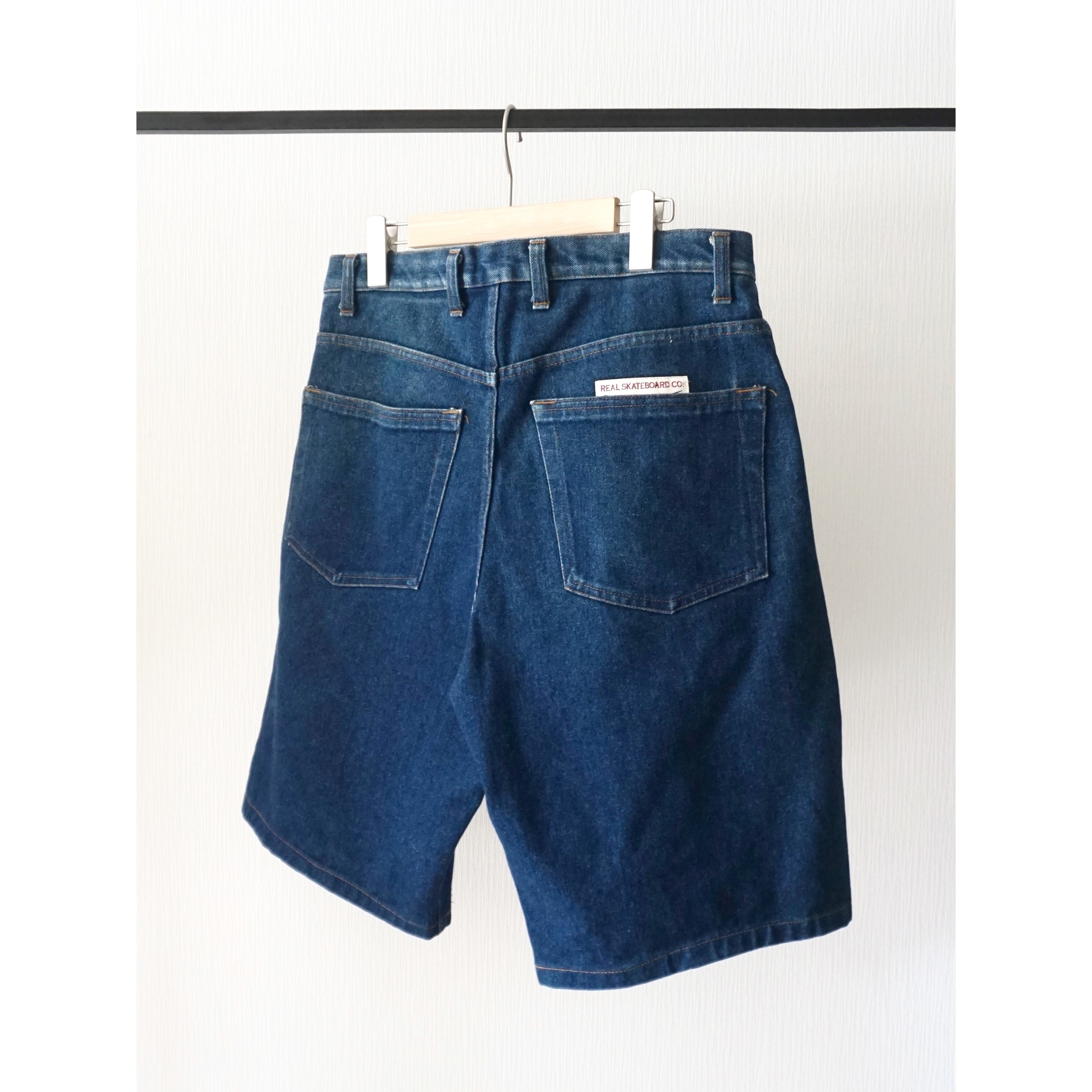 1990s "REAL SKATEBOARD CO." indigo denim baggy shorts made in USA