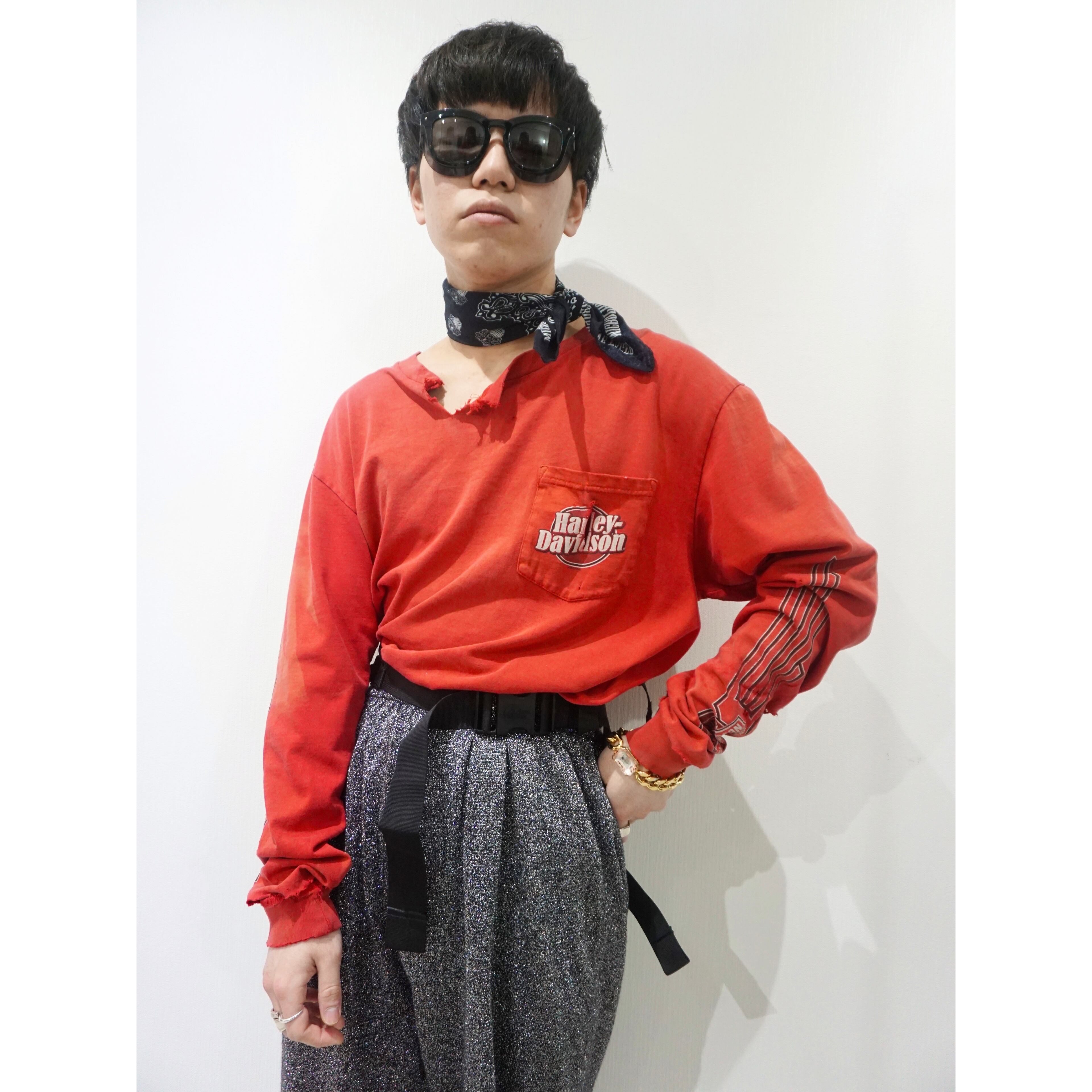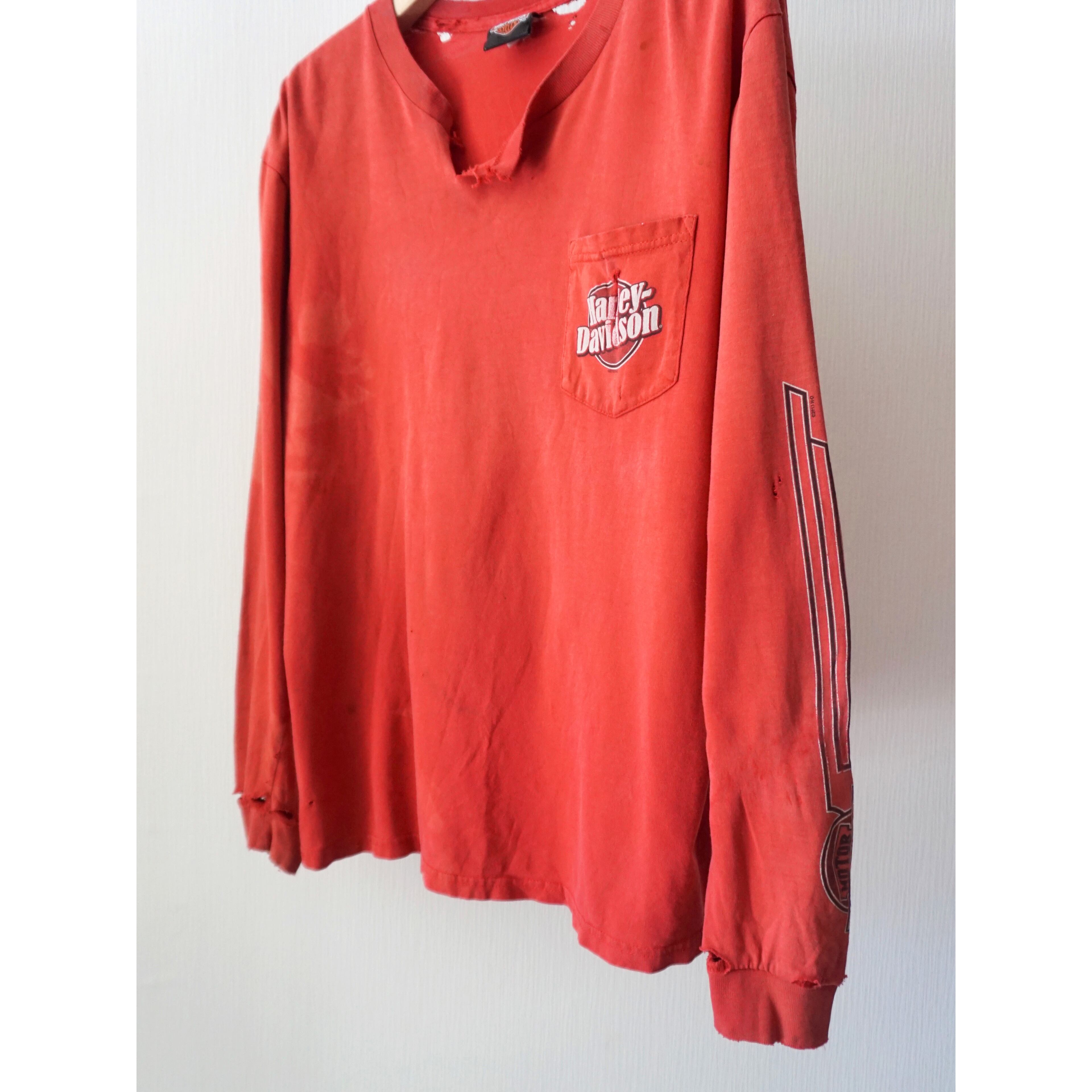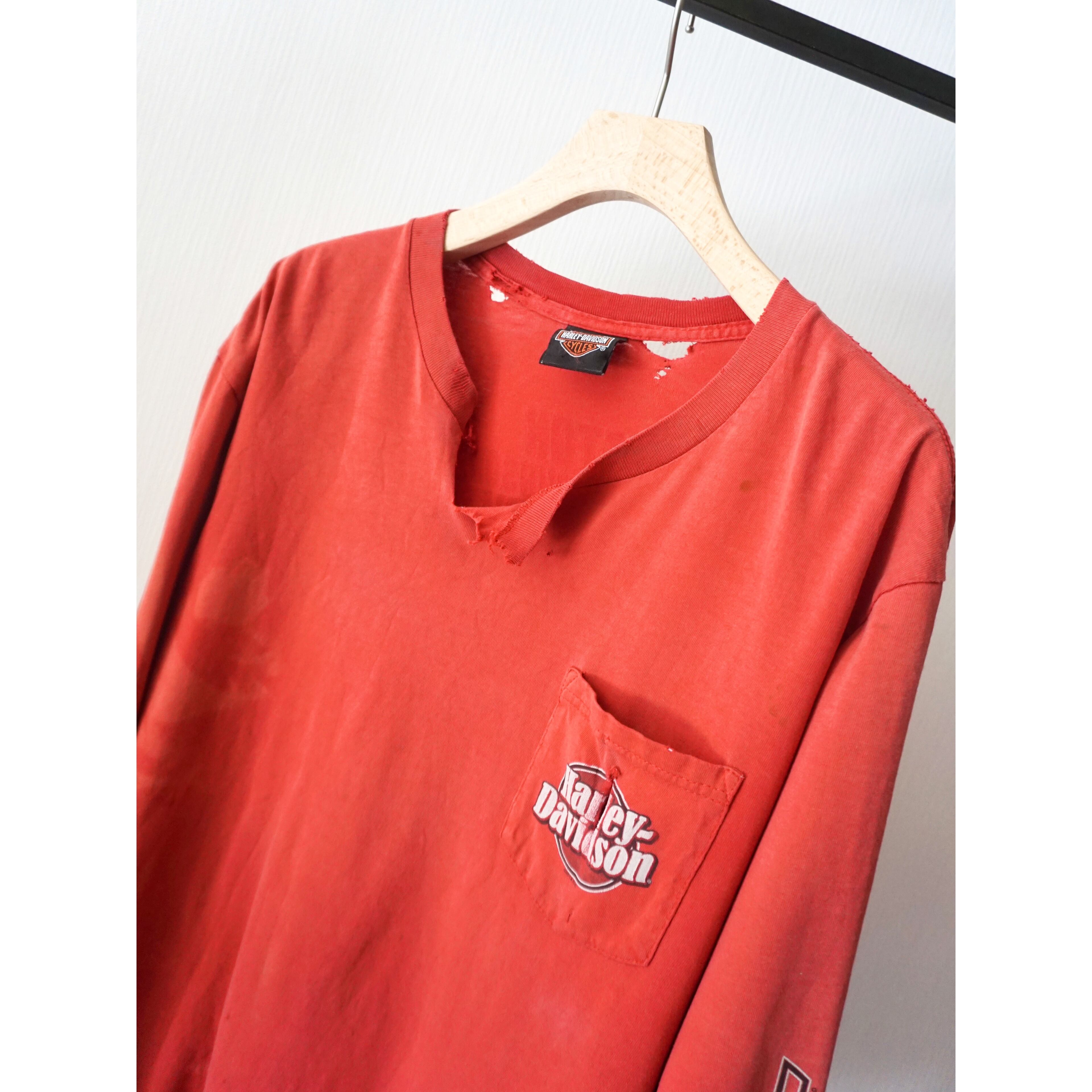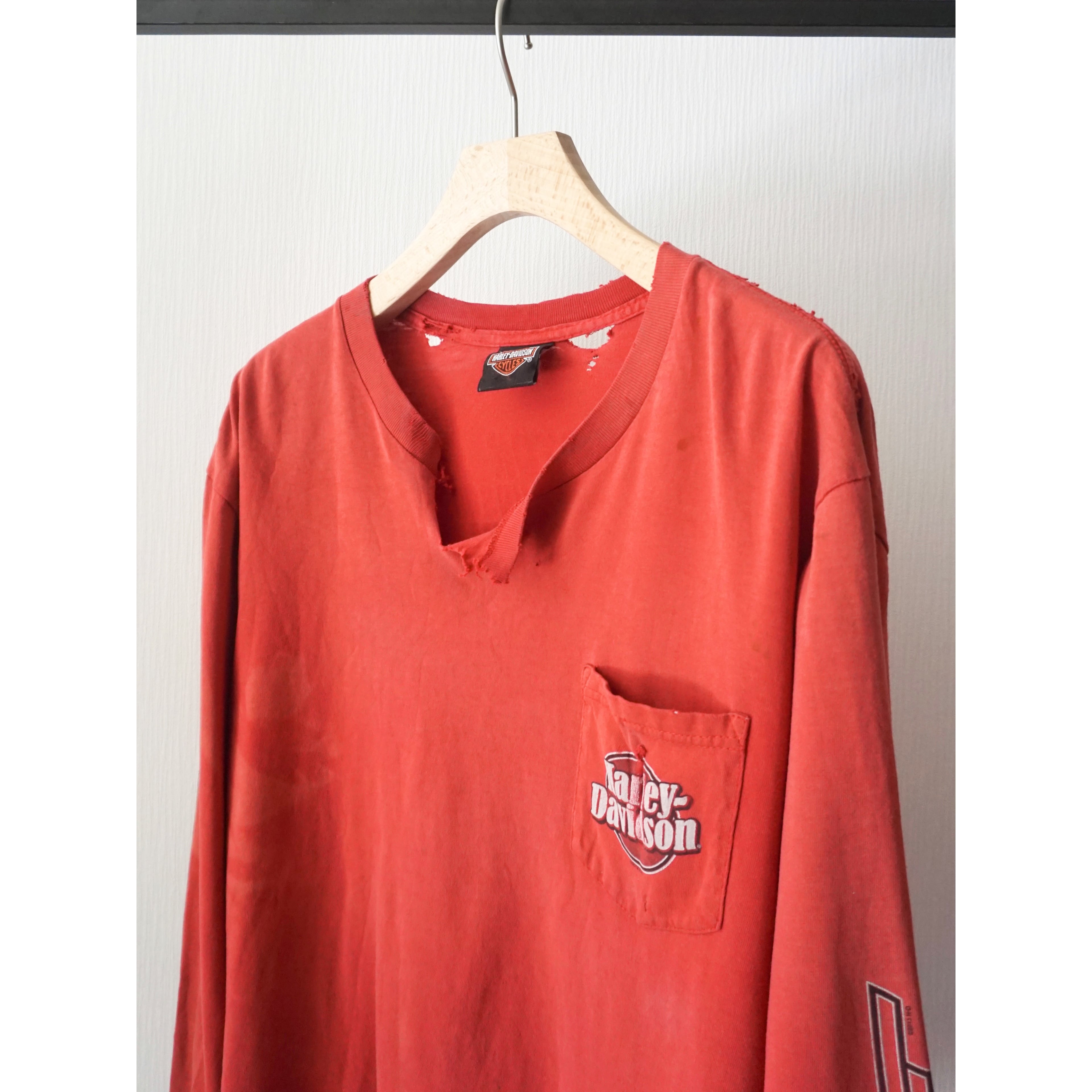 "HARLEY-DAVIDSON" sun-faded l/s printed cut&sewn
