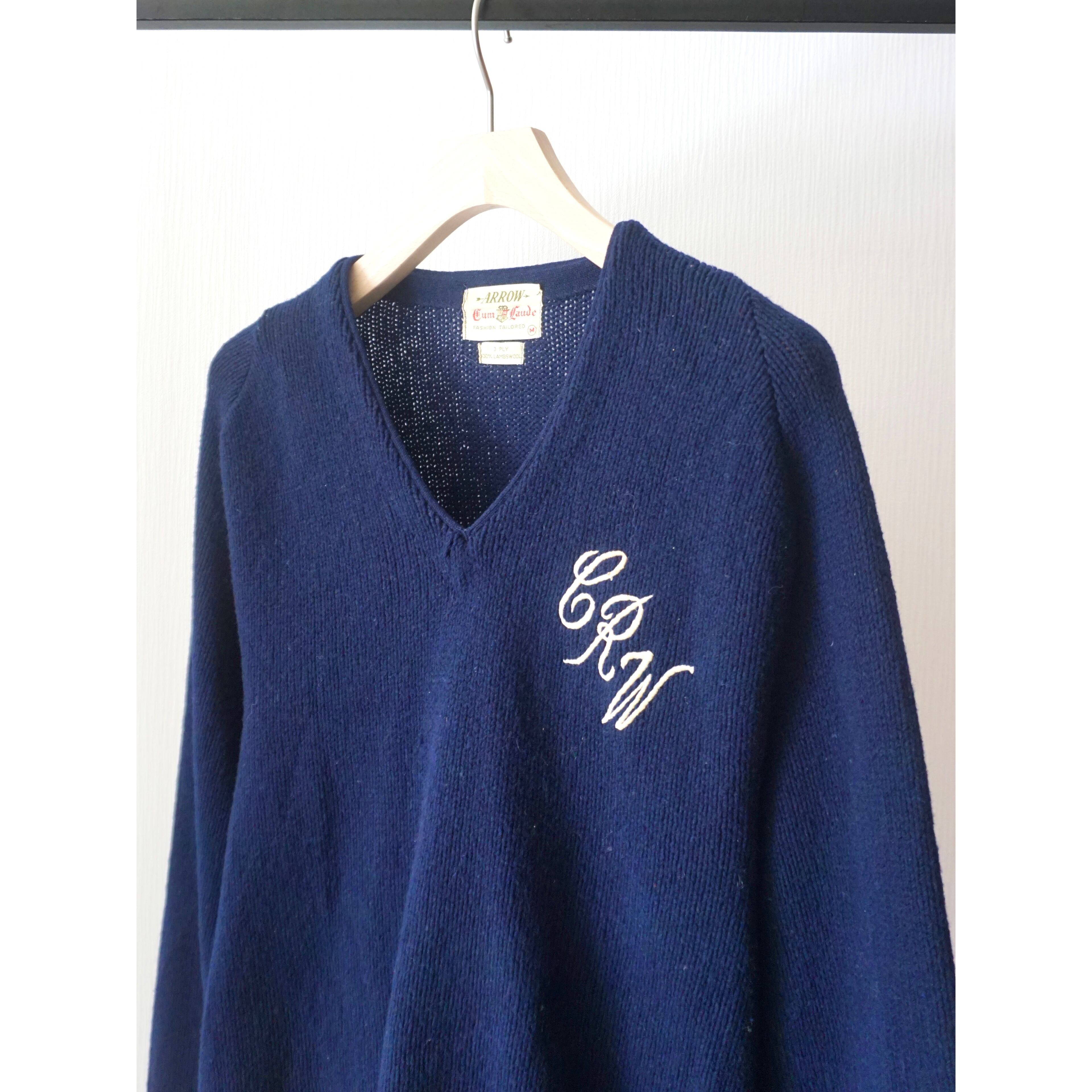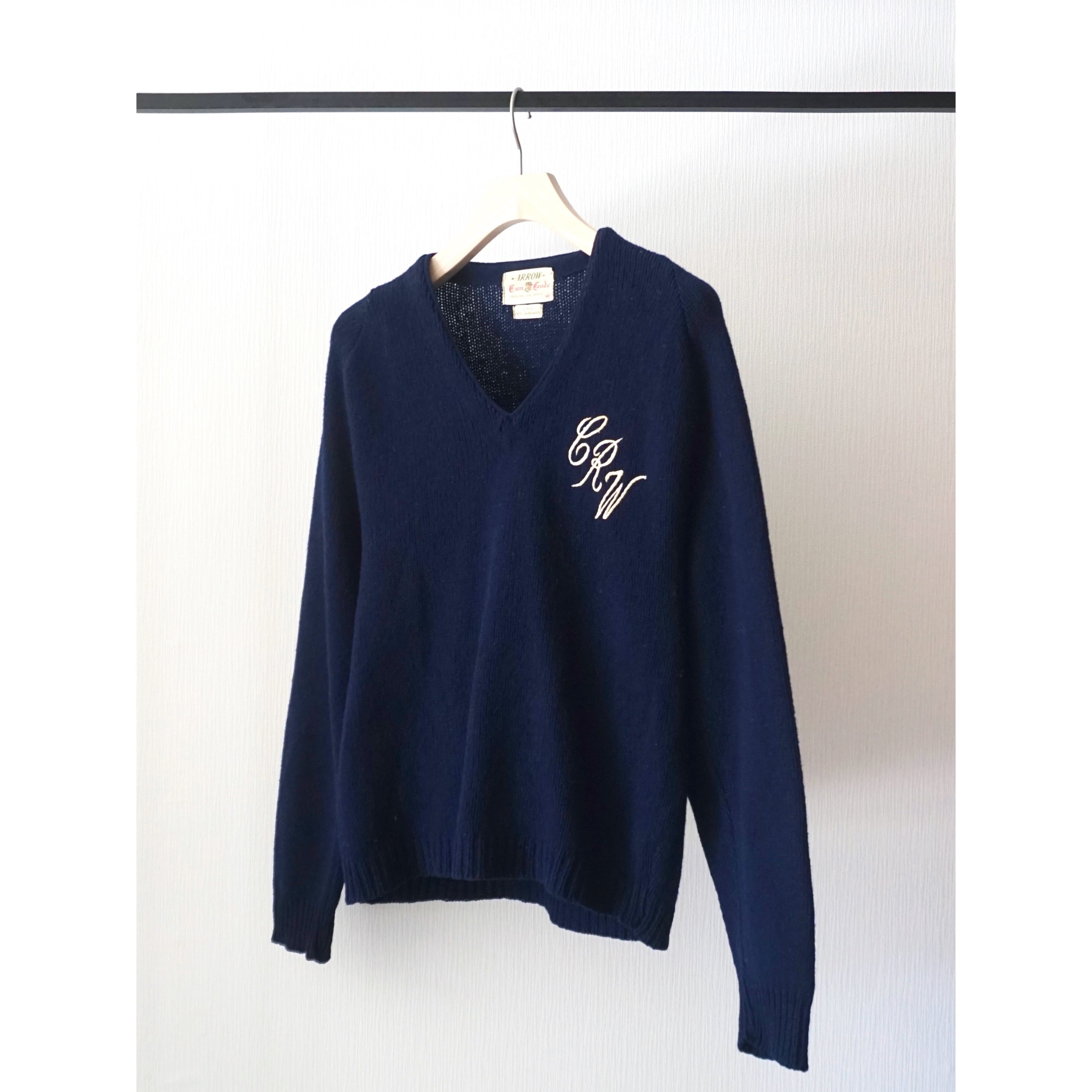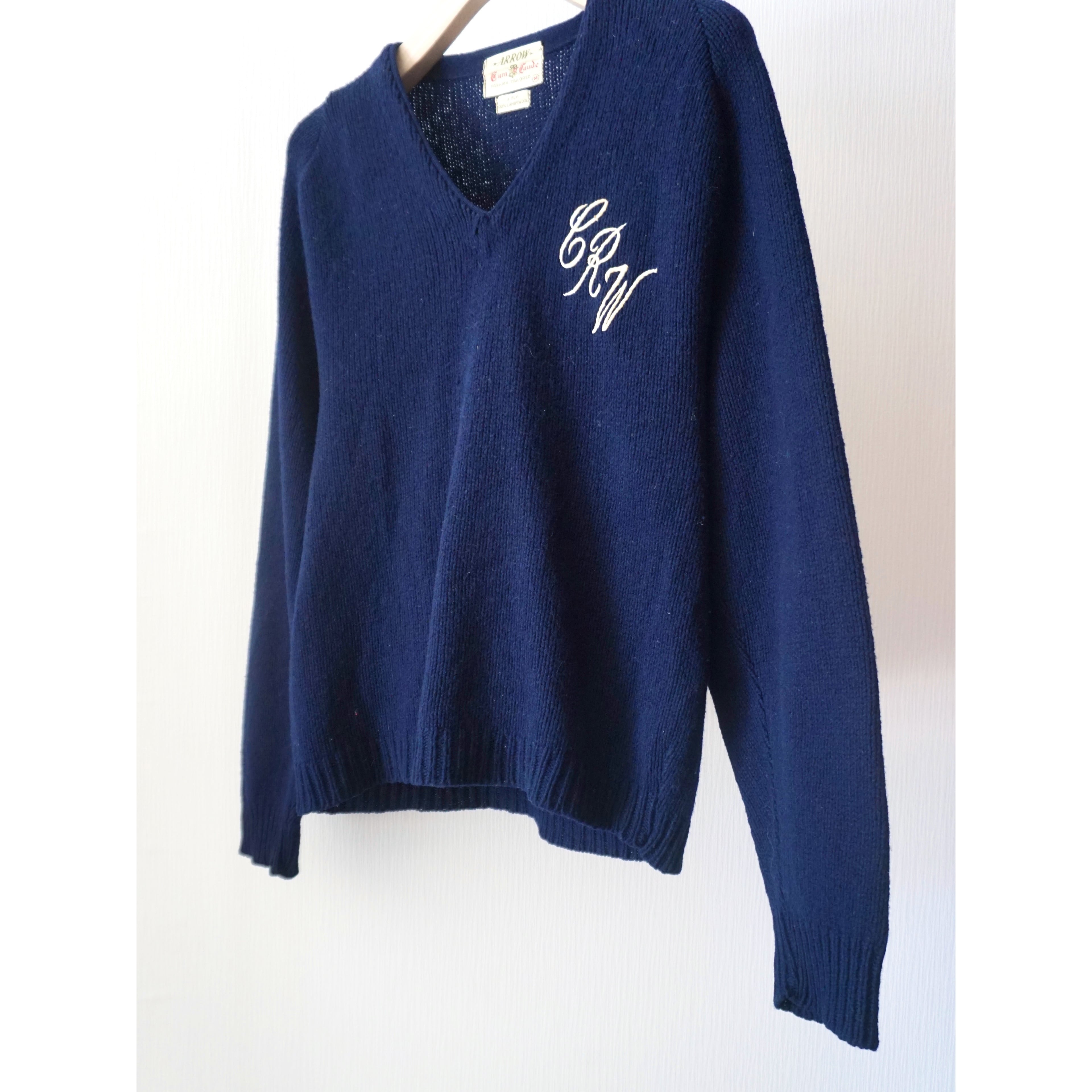 1960s vintage "ARROW" embroidery design v-neck knit sweater