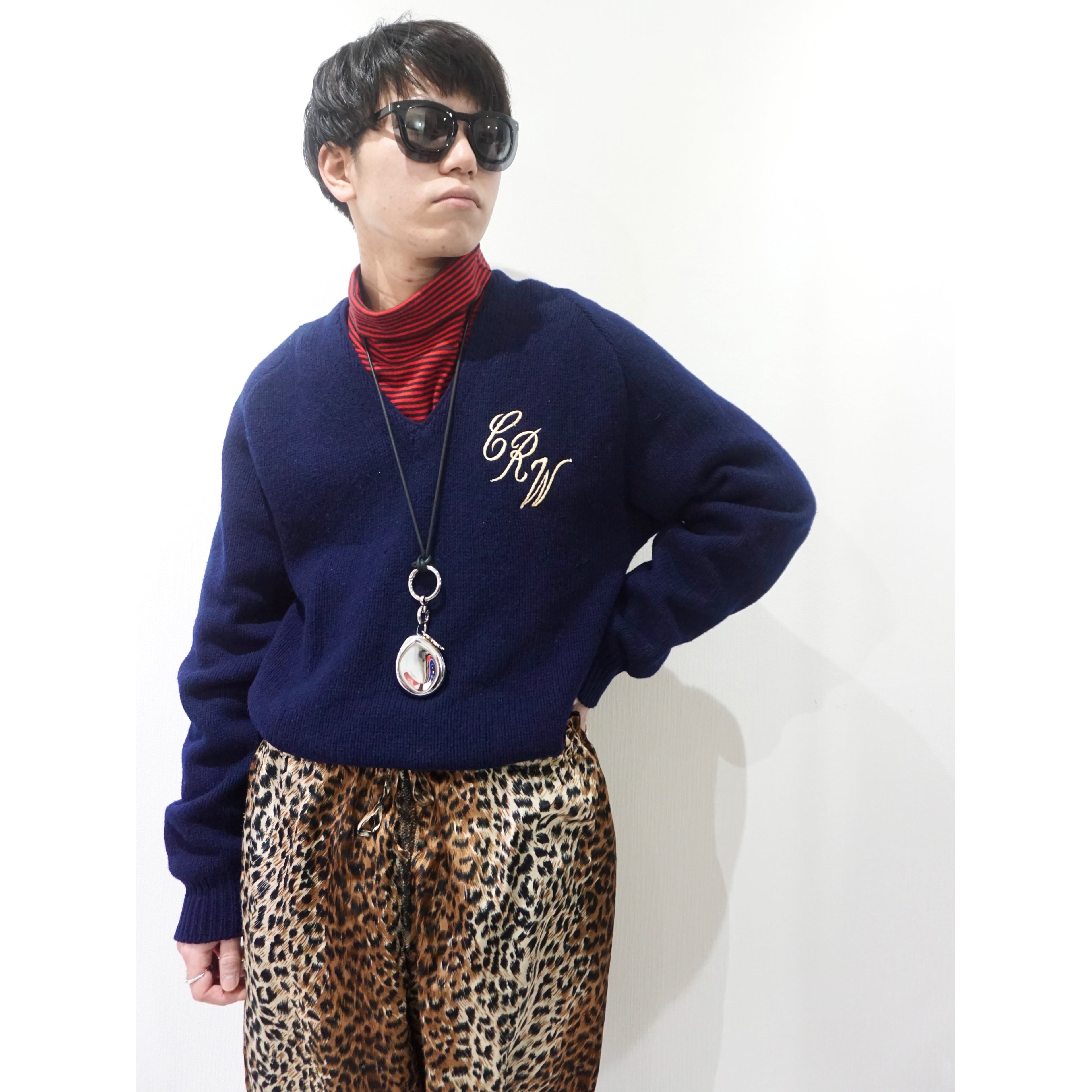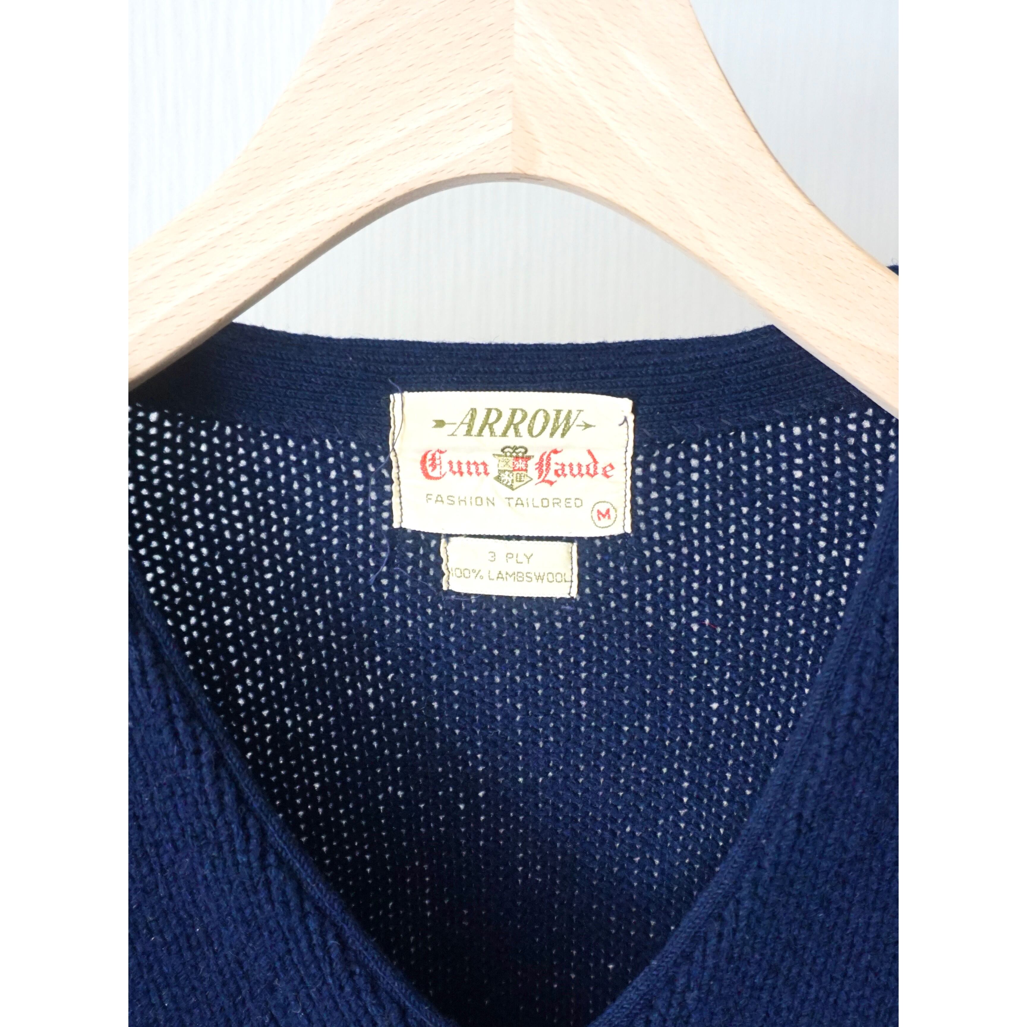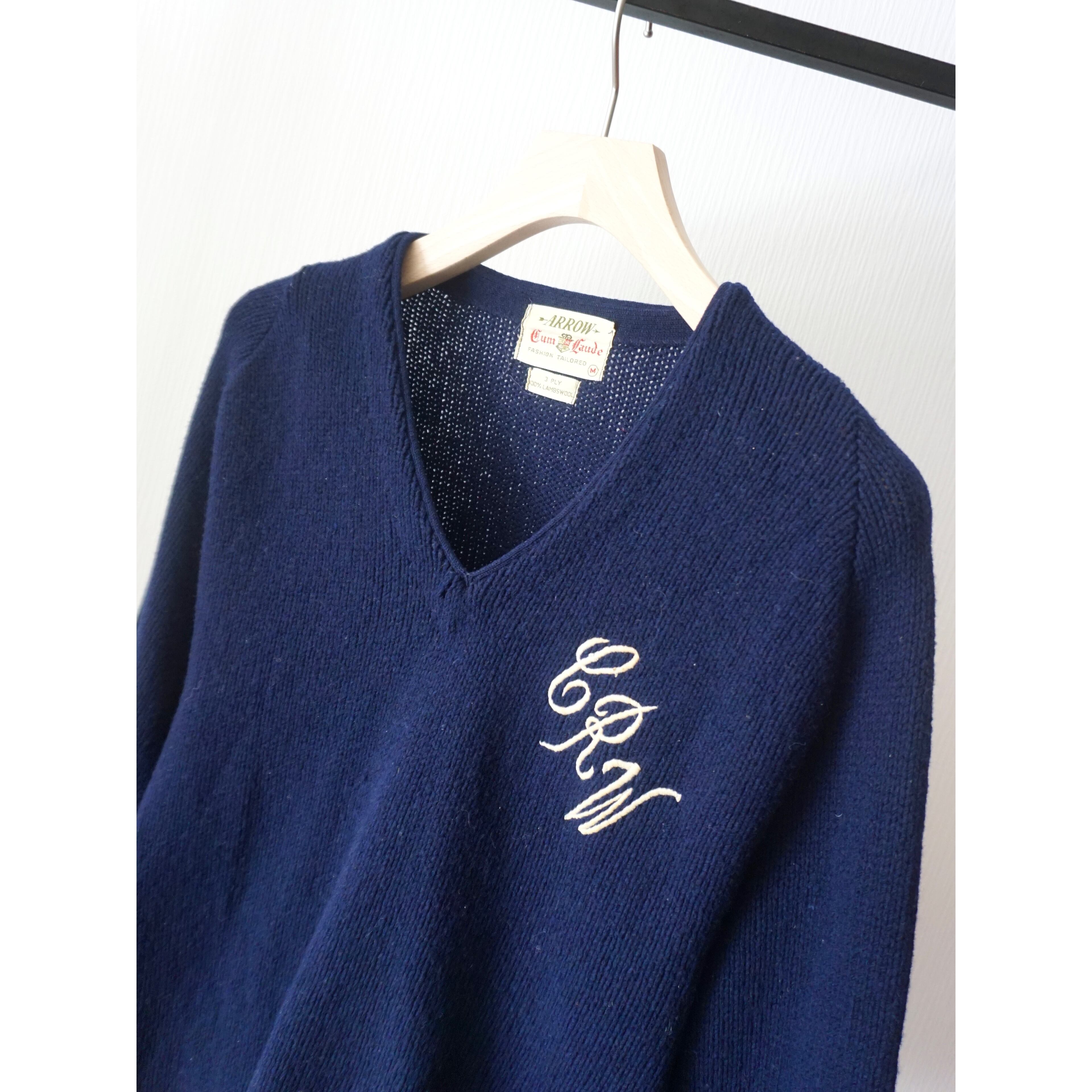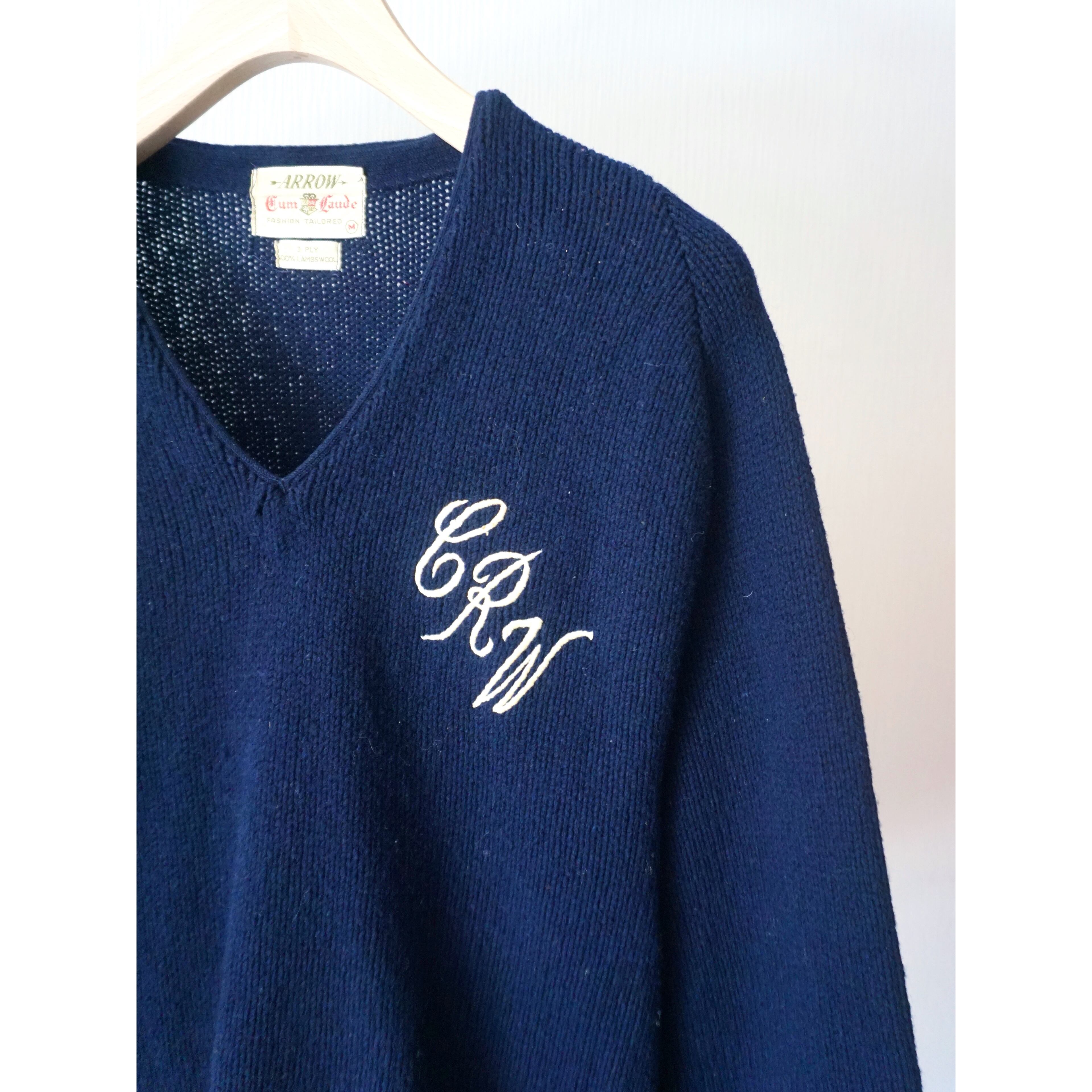 1960s vintage "ARROW" embroidery design v-neck knit sweater