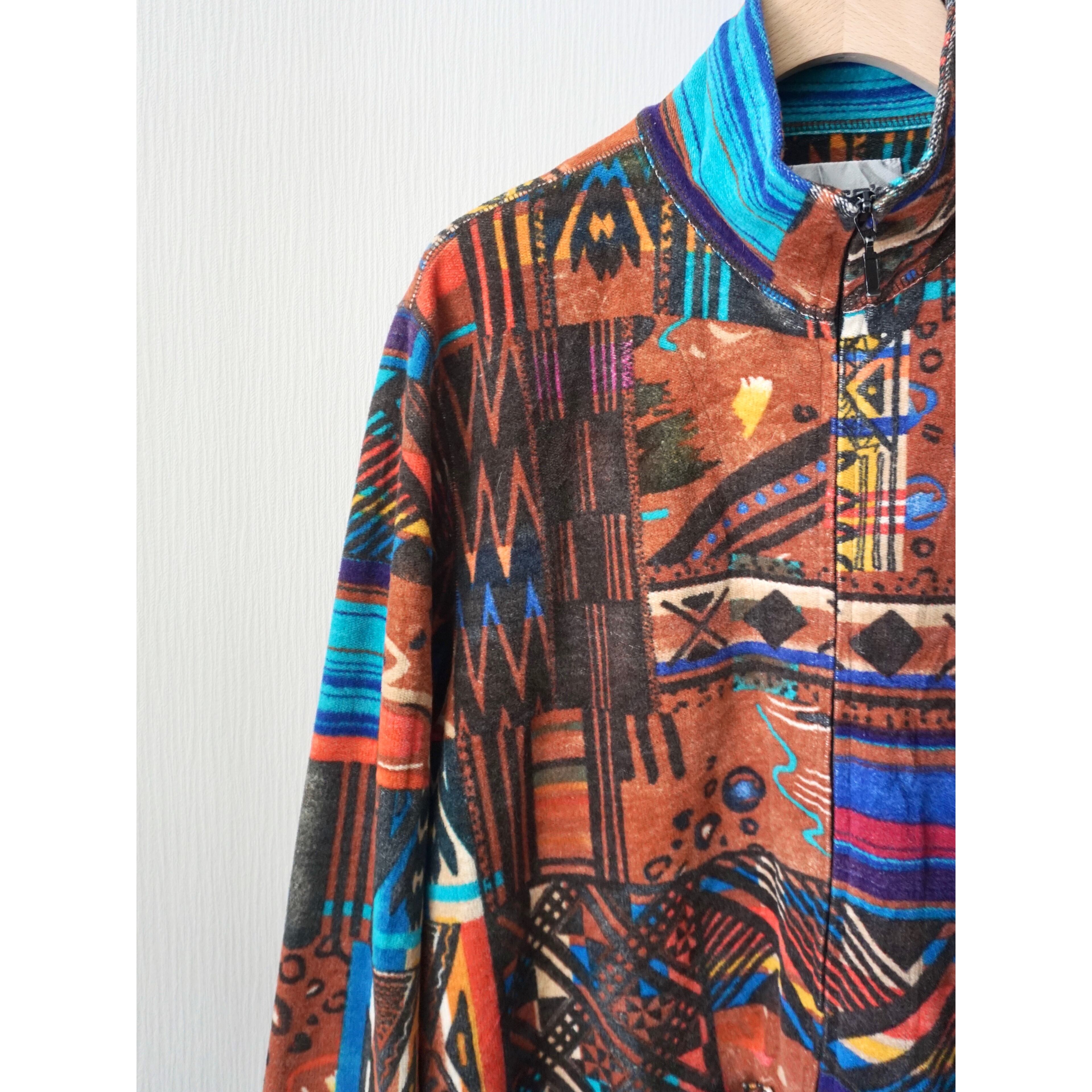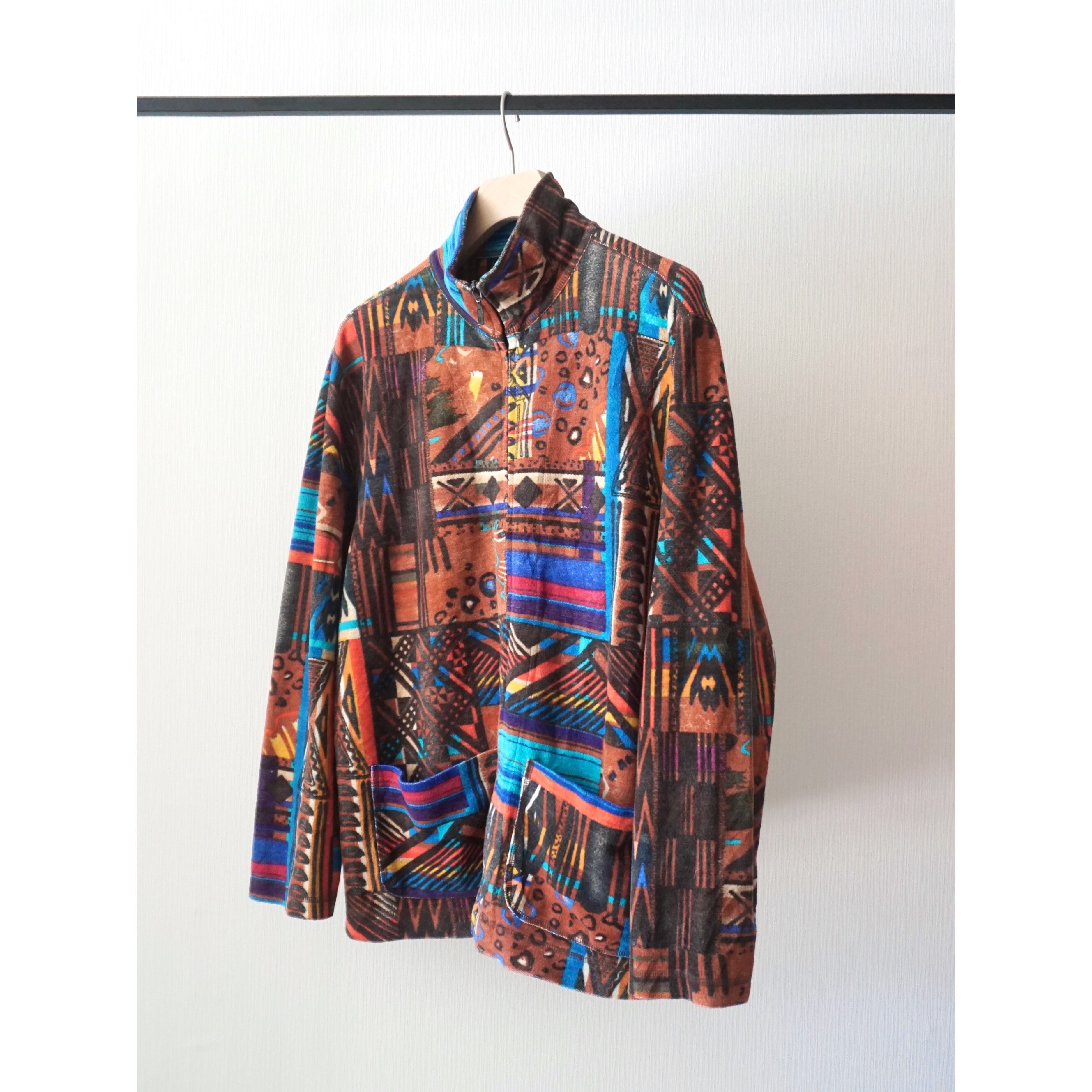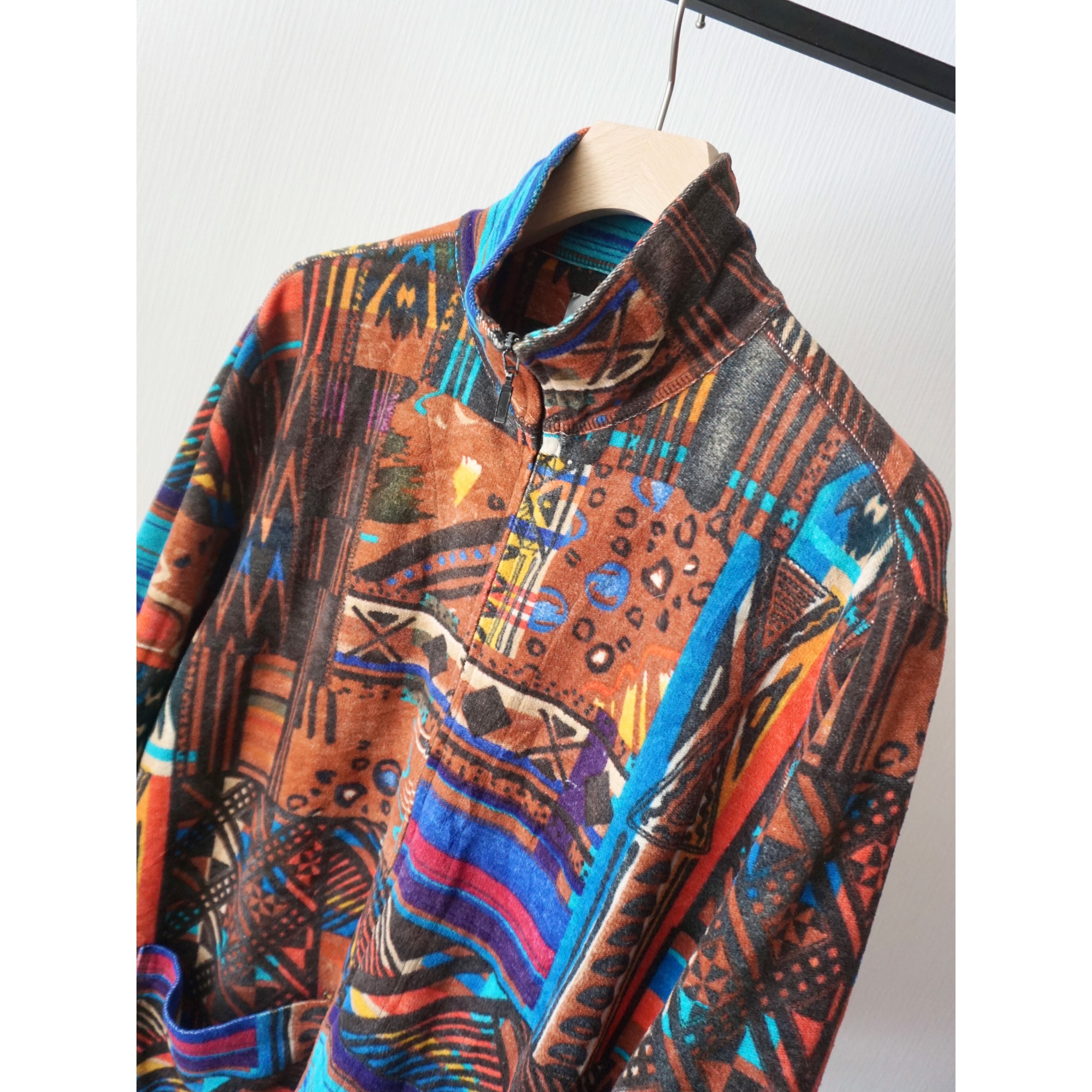 1990s abstract print cotton zip up jacket