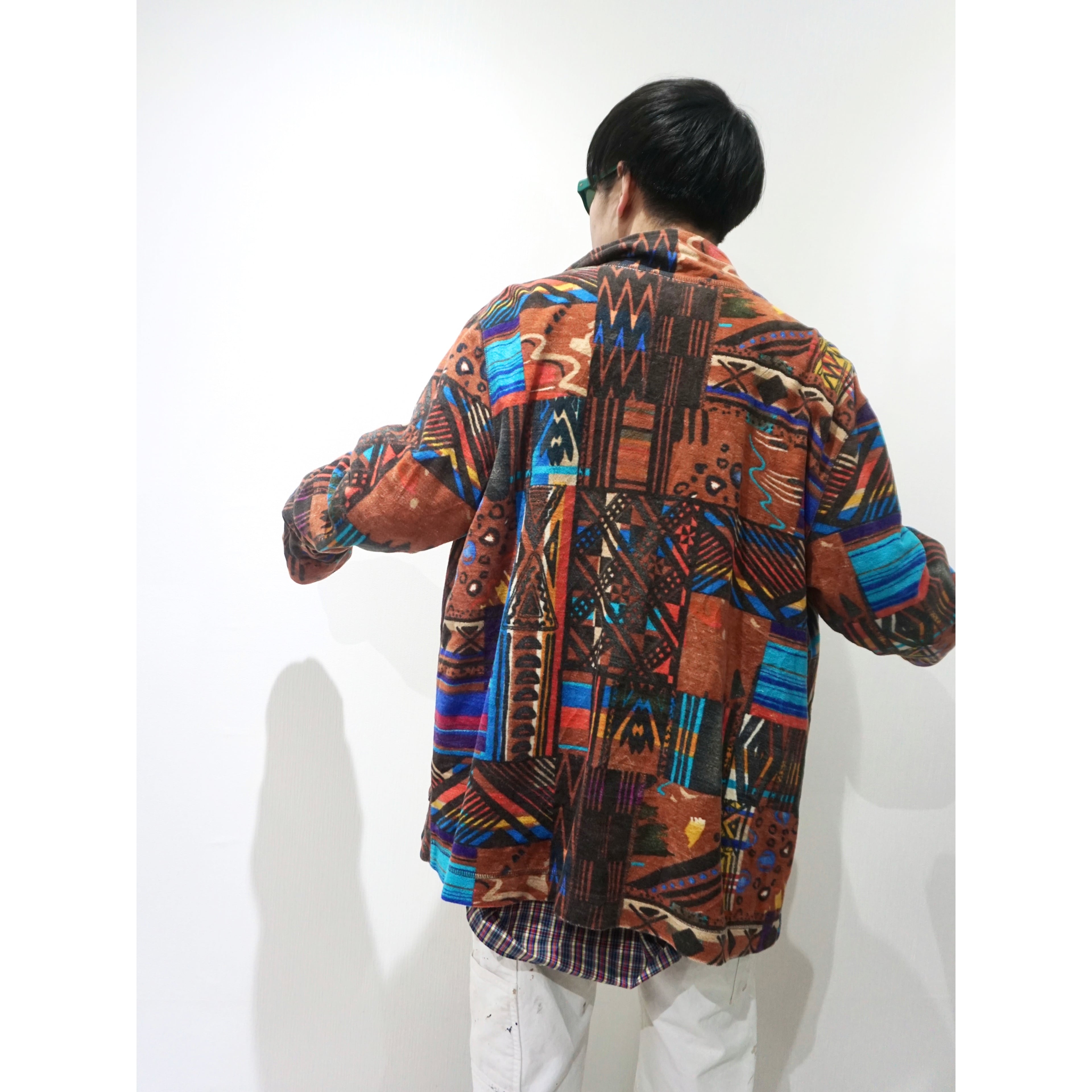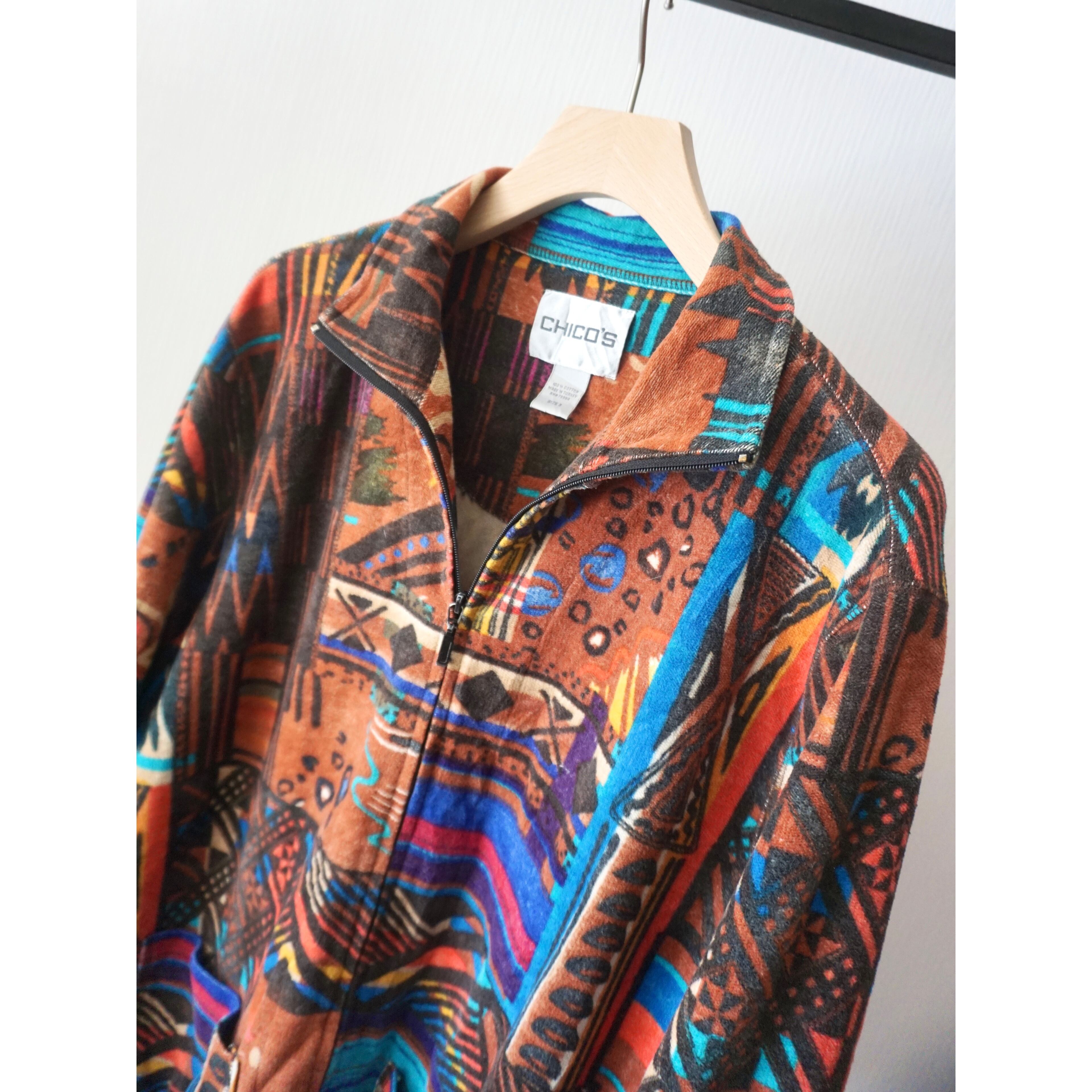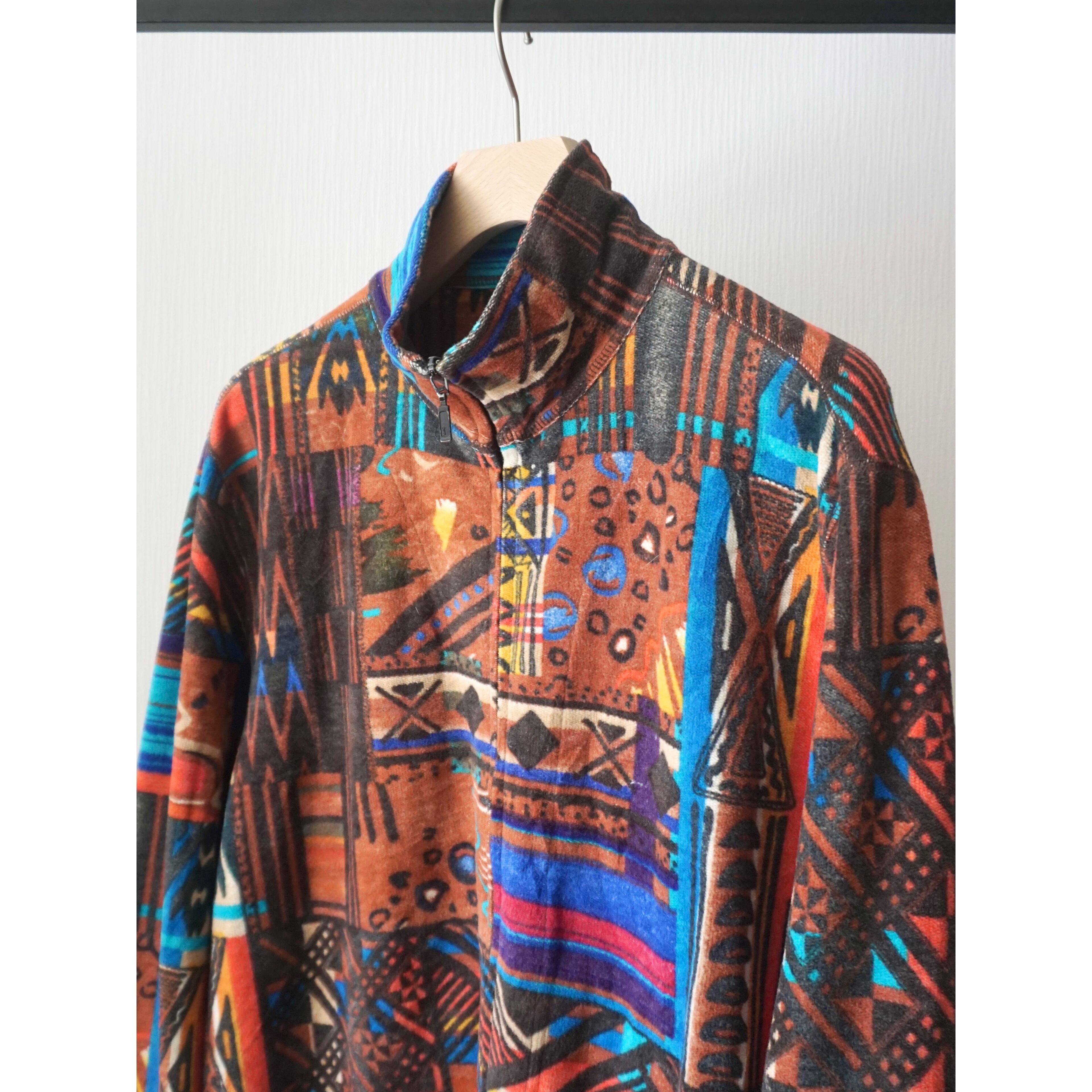 1990s abstract print cotton zip up jacket