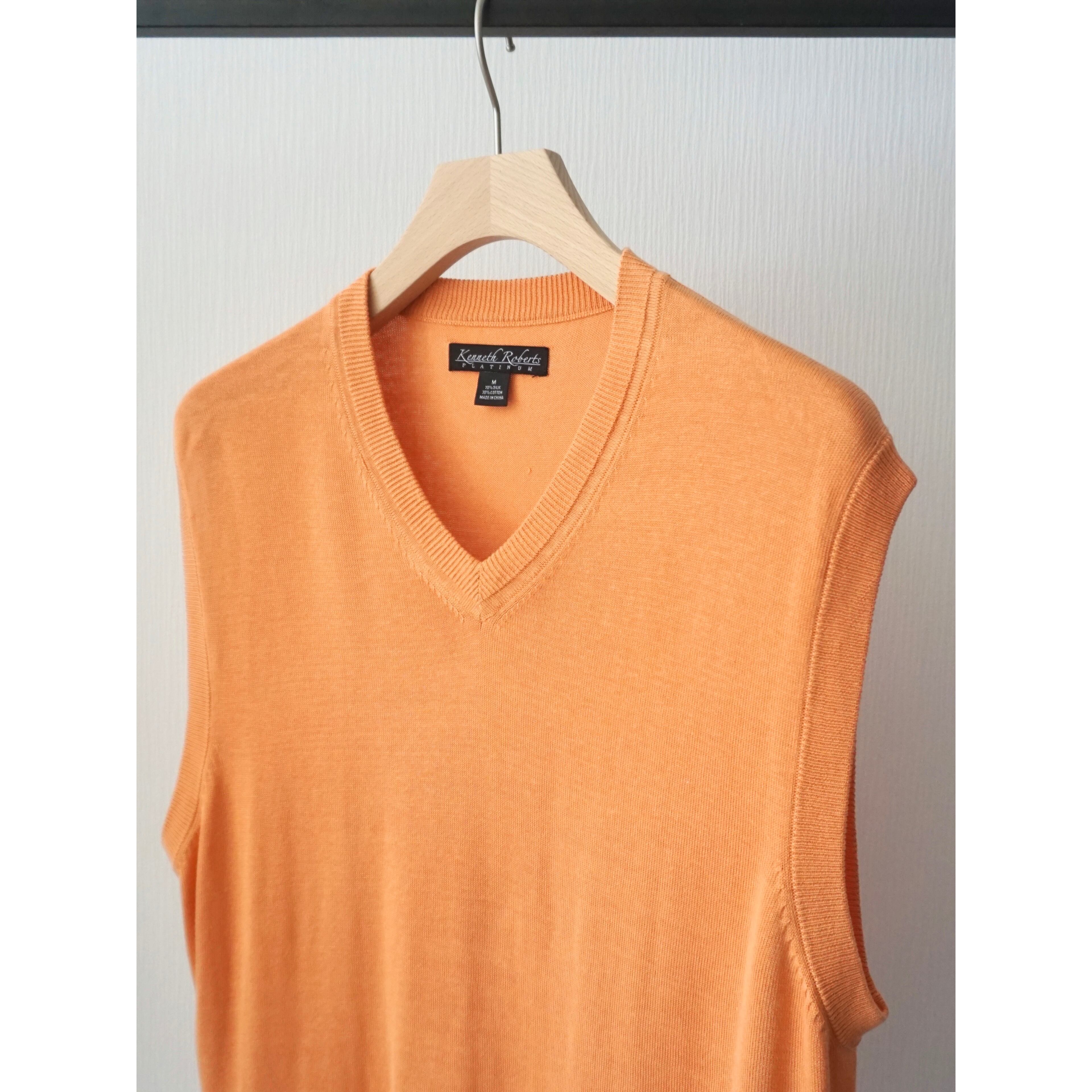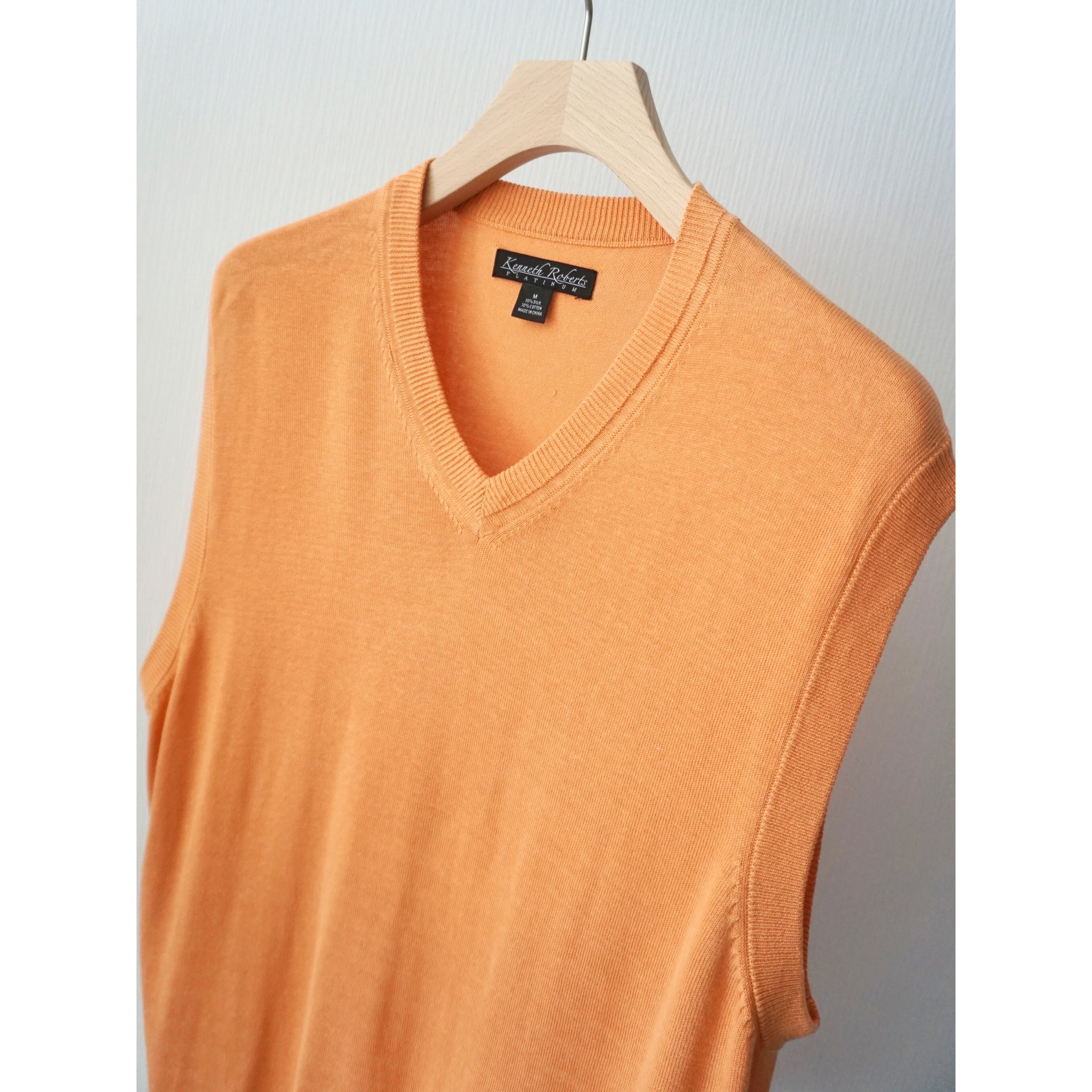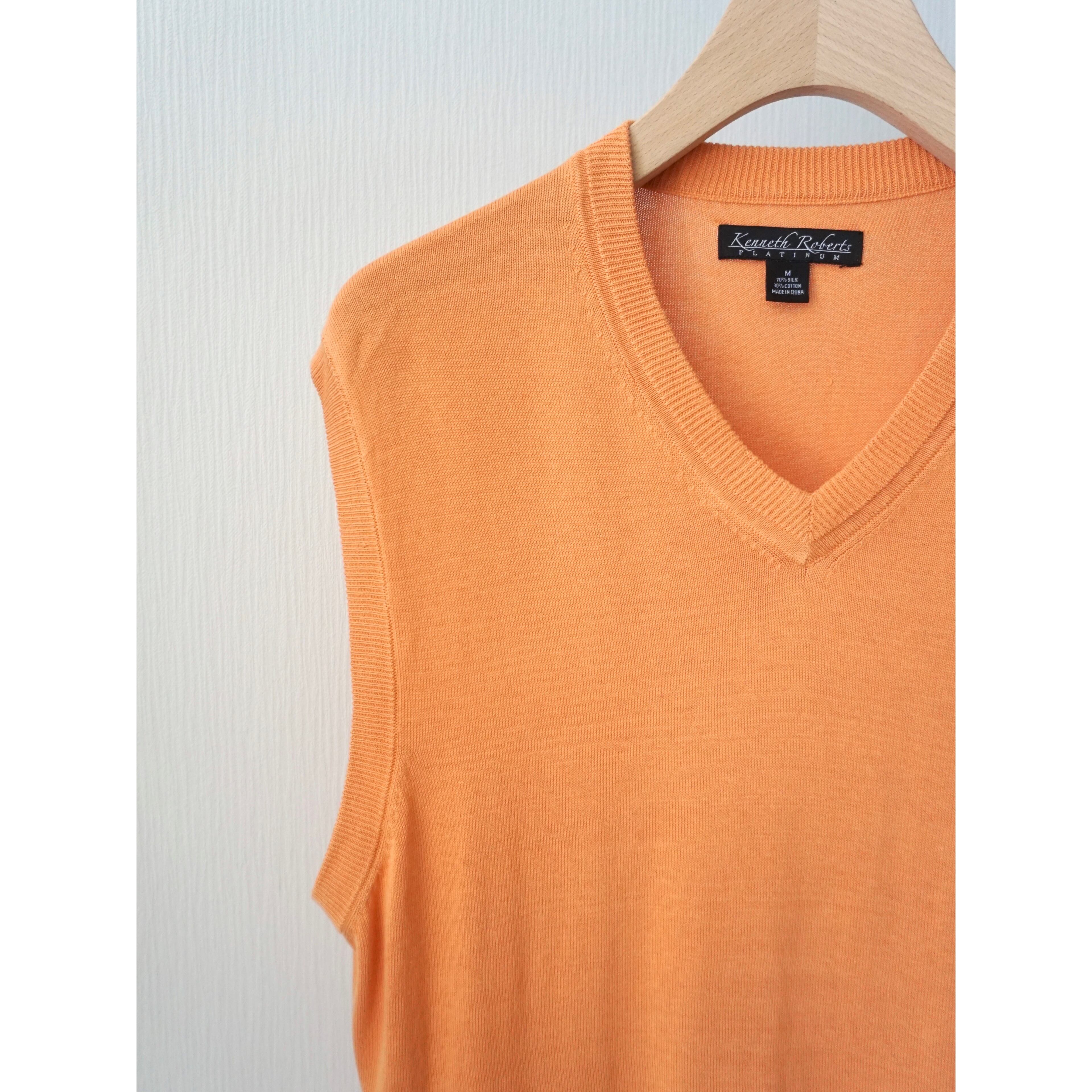 1990s sherbet orange color silk × cotton knit vest