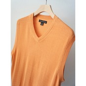 春にピッタリな淡いシャーベットオレンジカラーが目を惹くニットベスト。