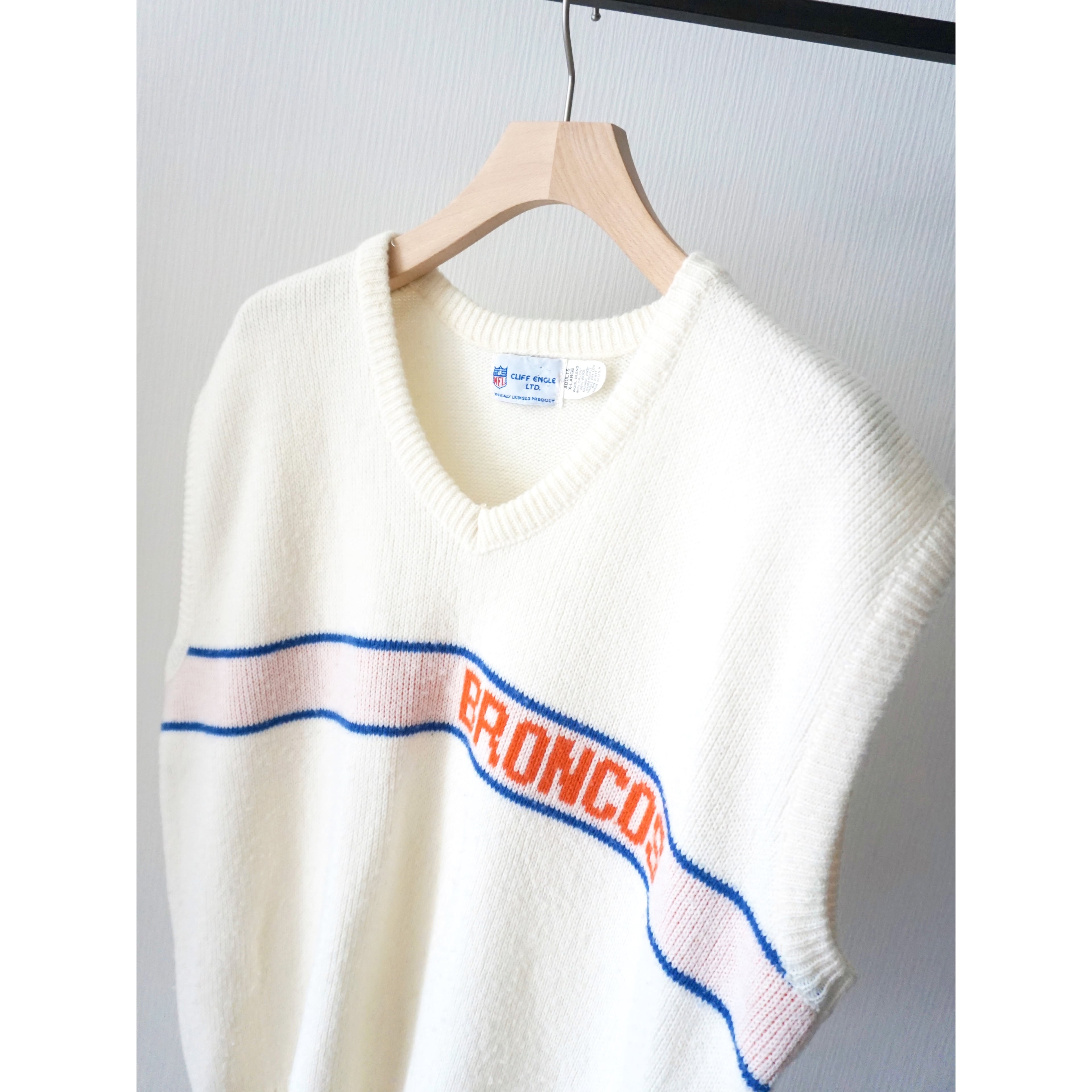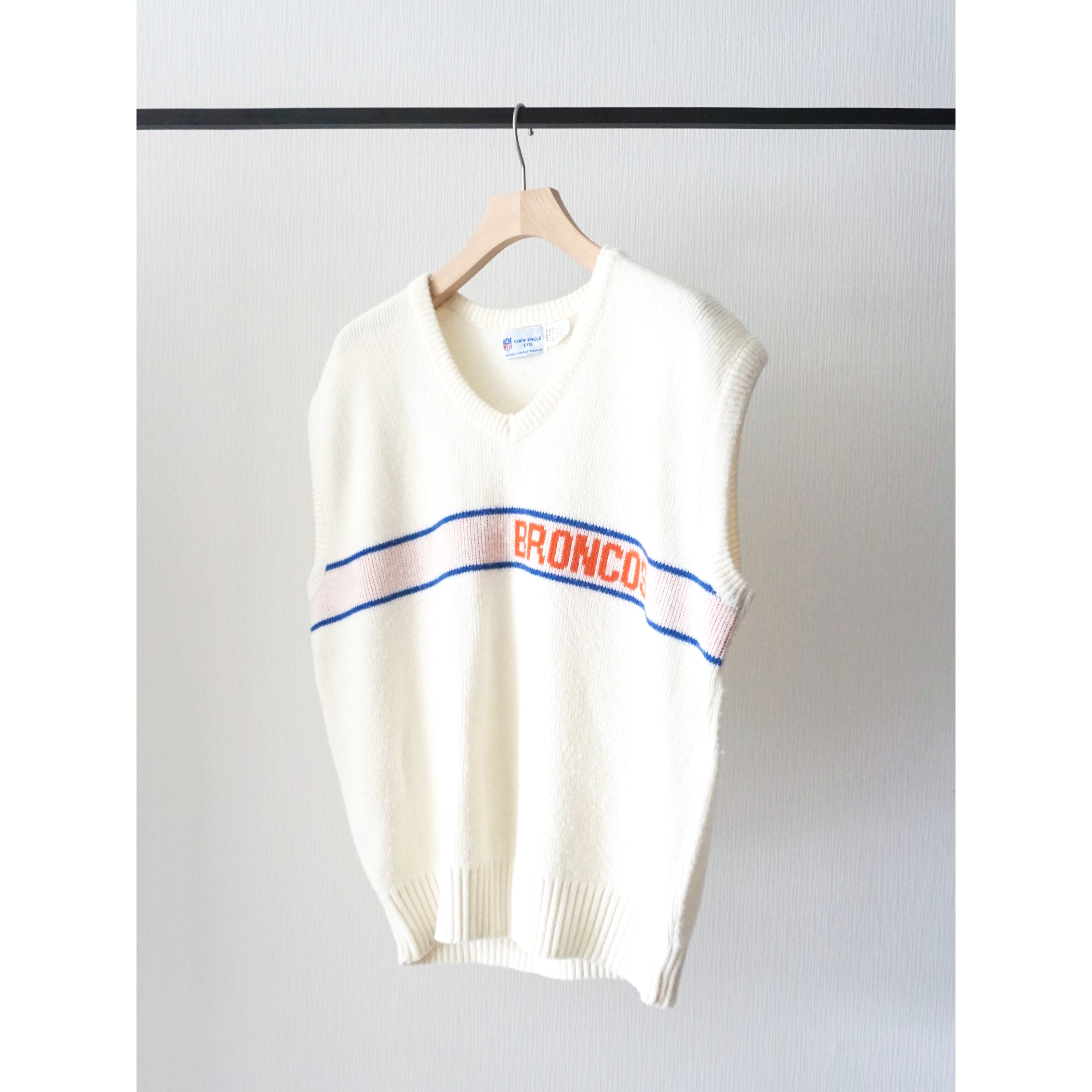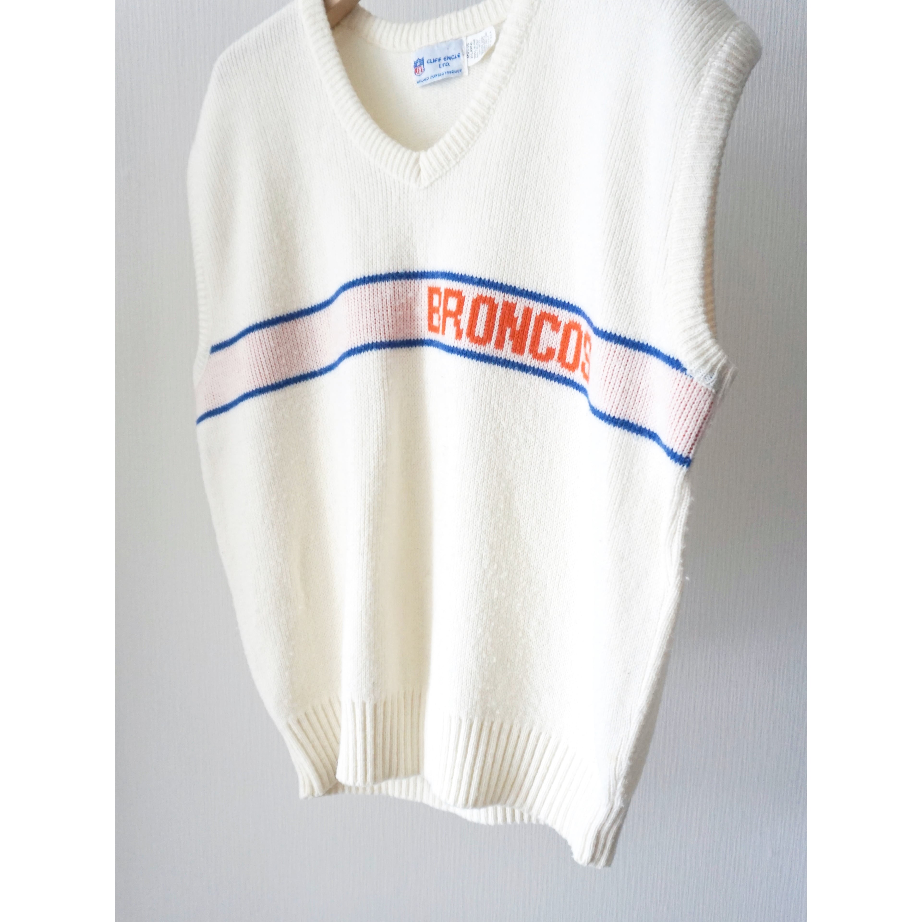 1990s "NFL Denver Broncos" white color knit vest made in USA