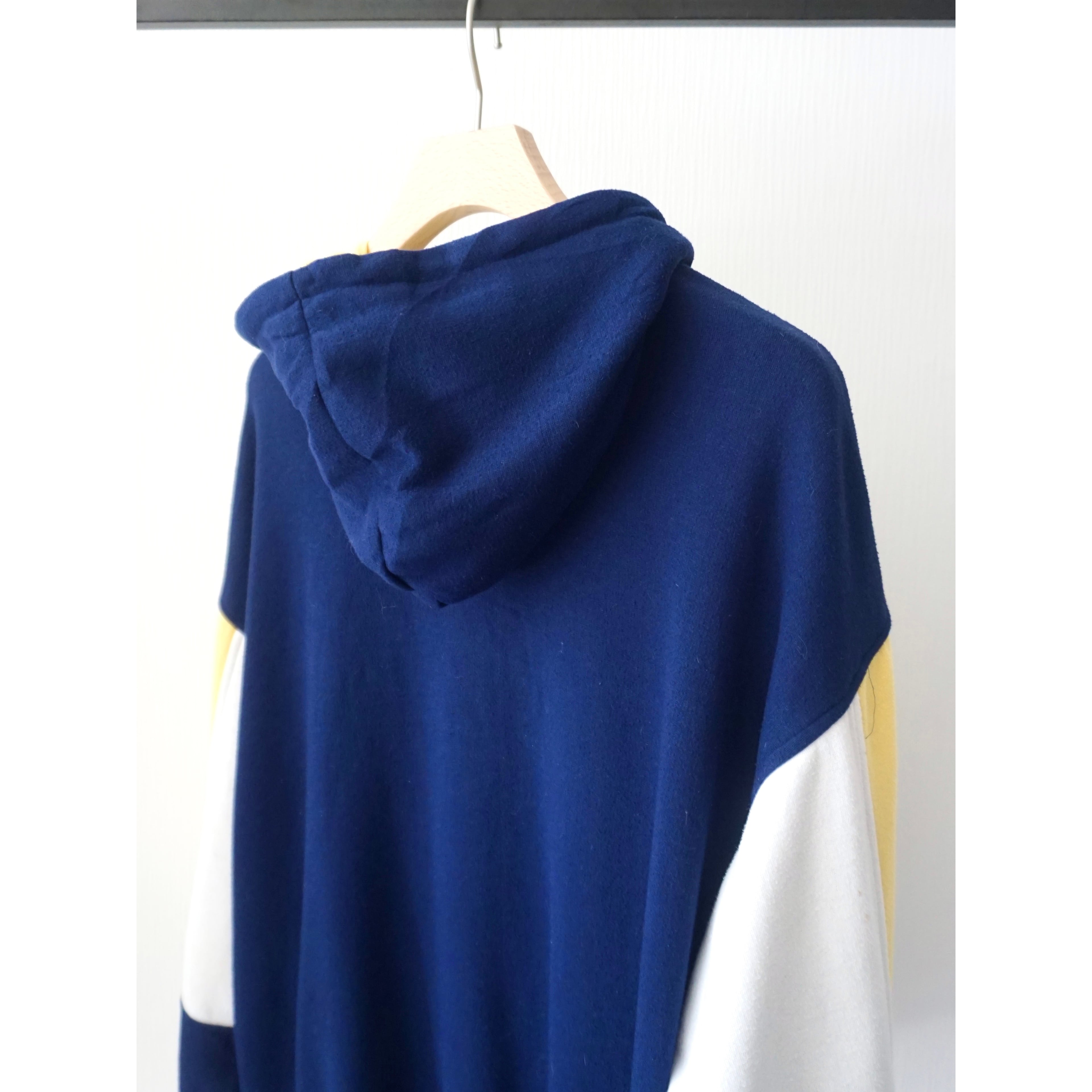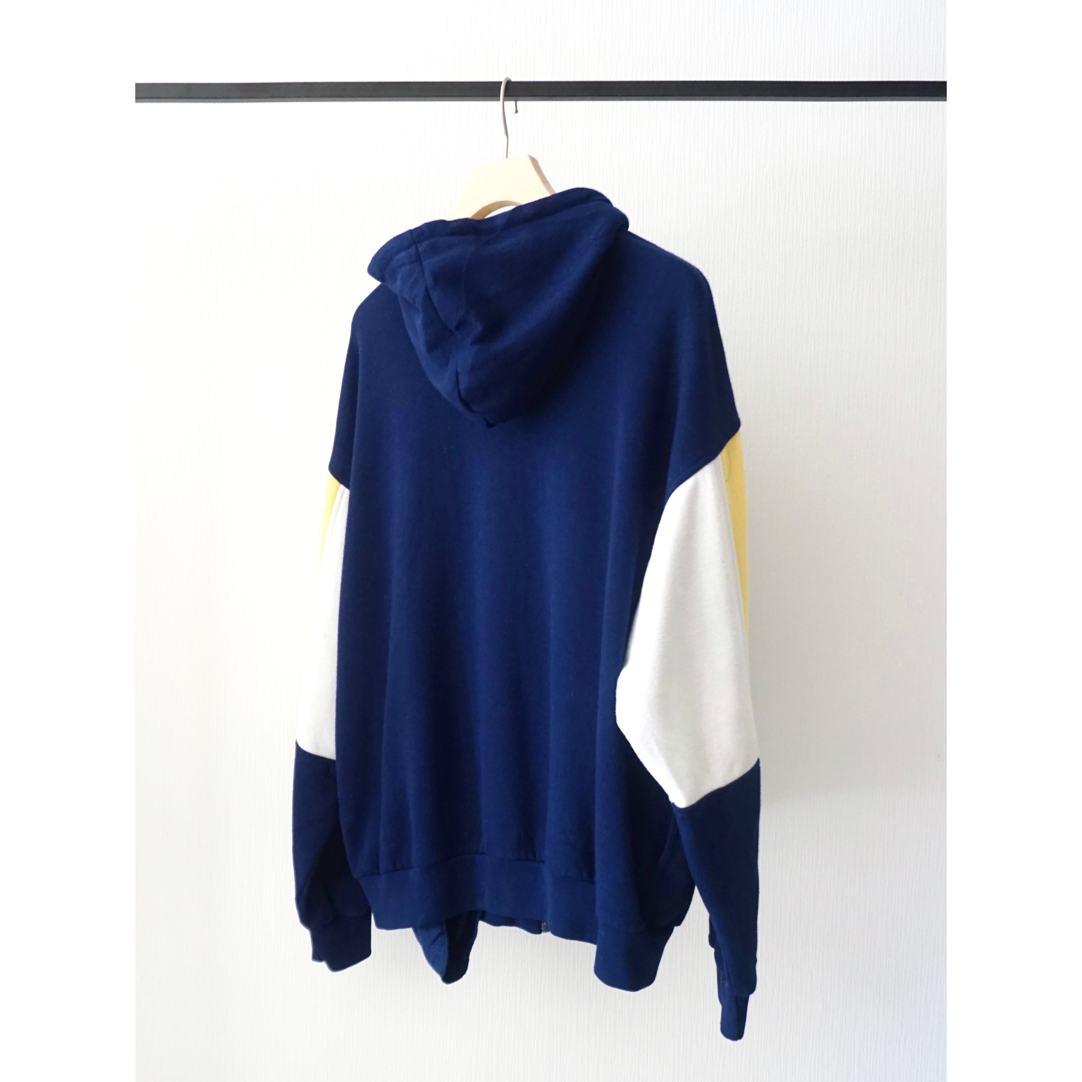 スウェットとジャージーの中間の様な柔らかな着心地のとても良い生地に、使い勝手良いジップアップパーカースタイルな一着。