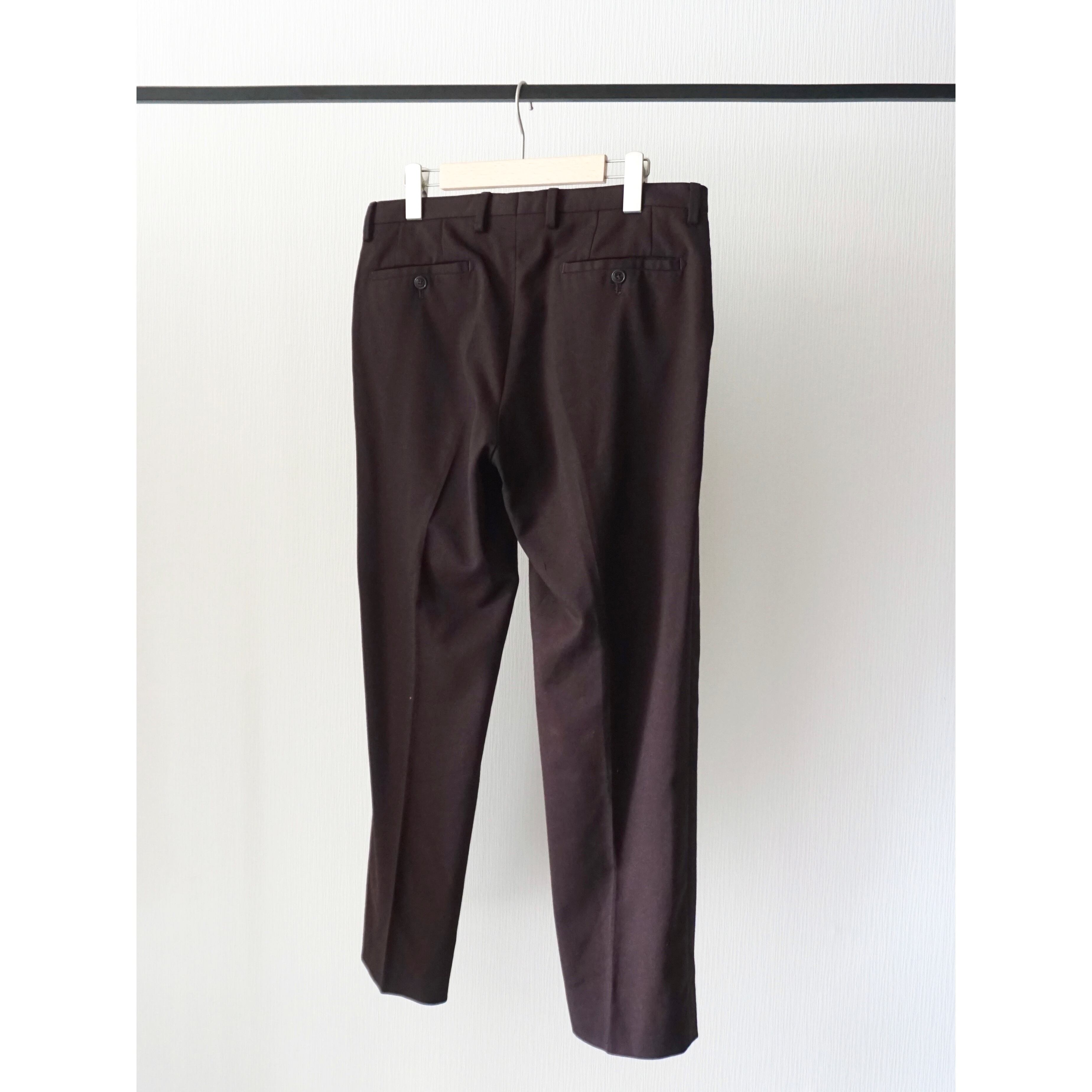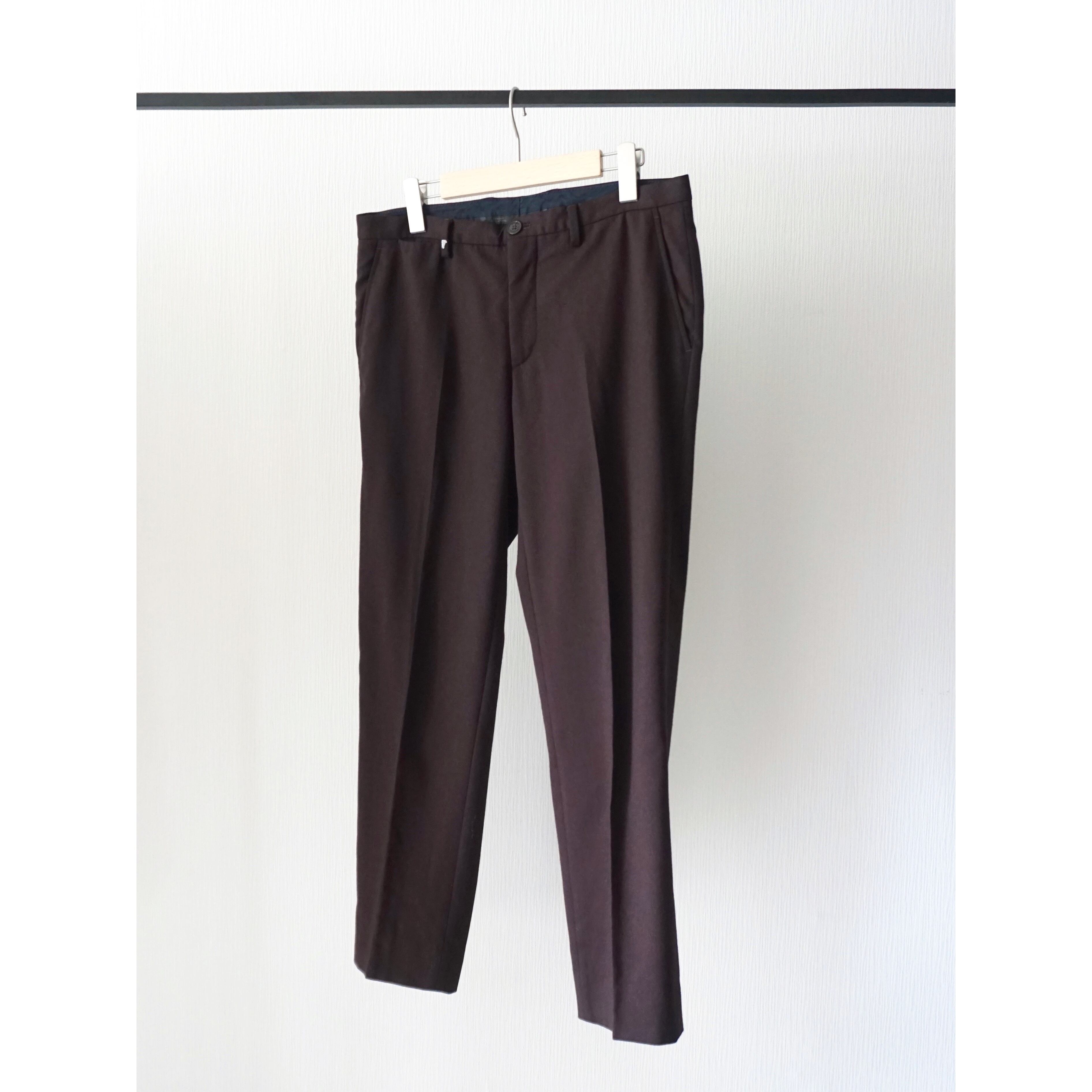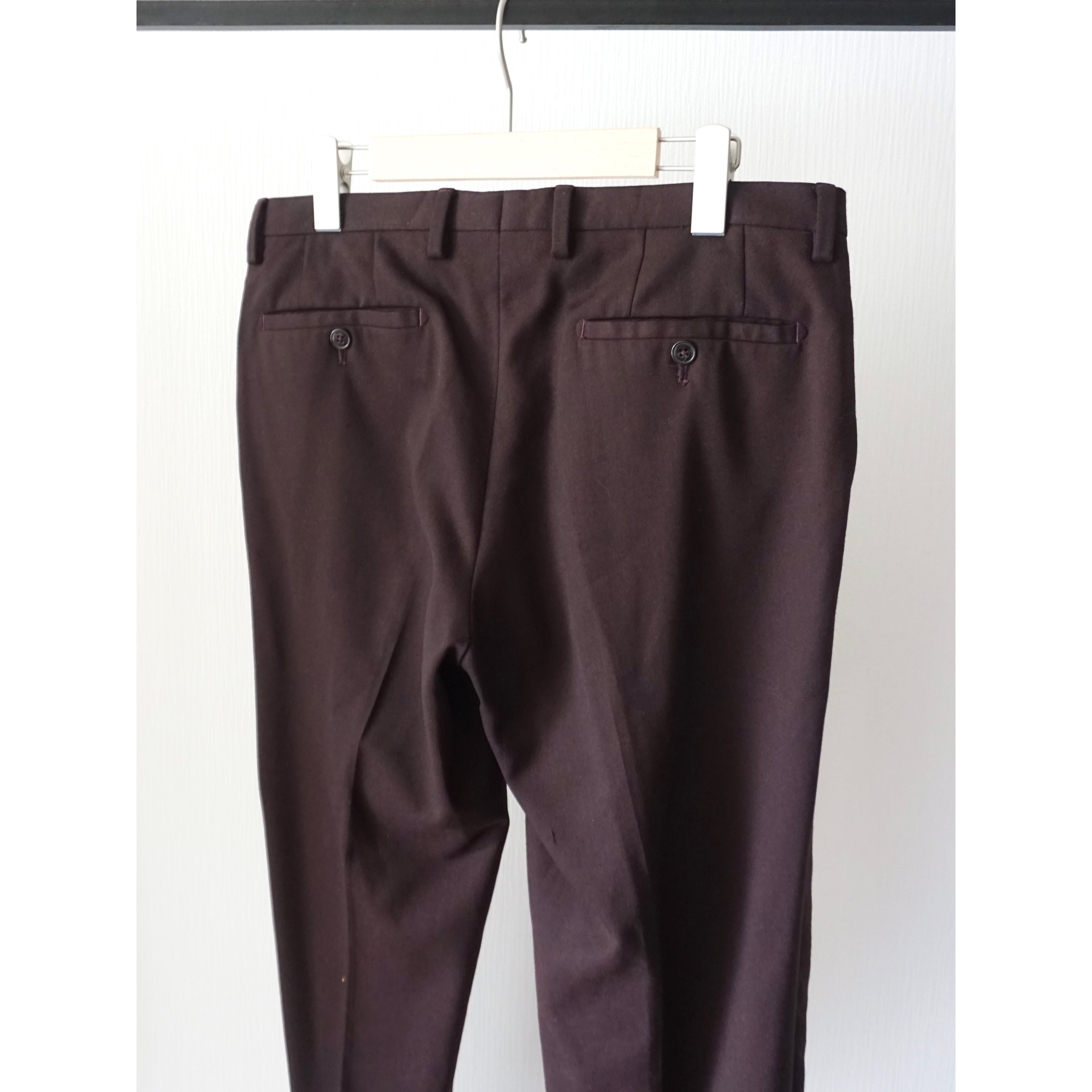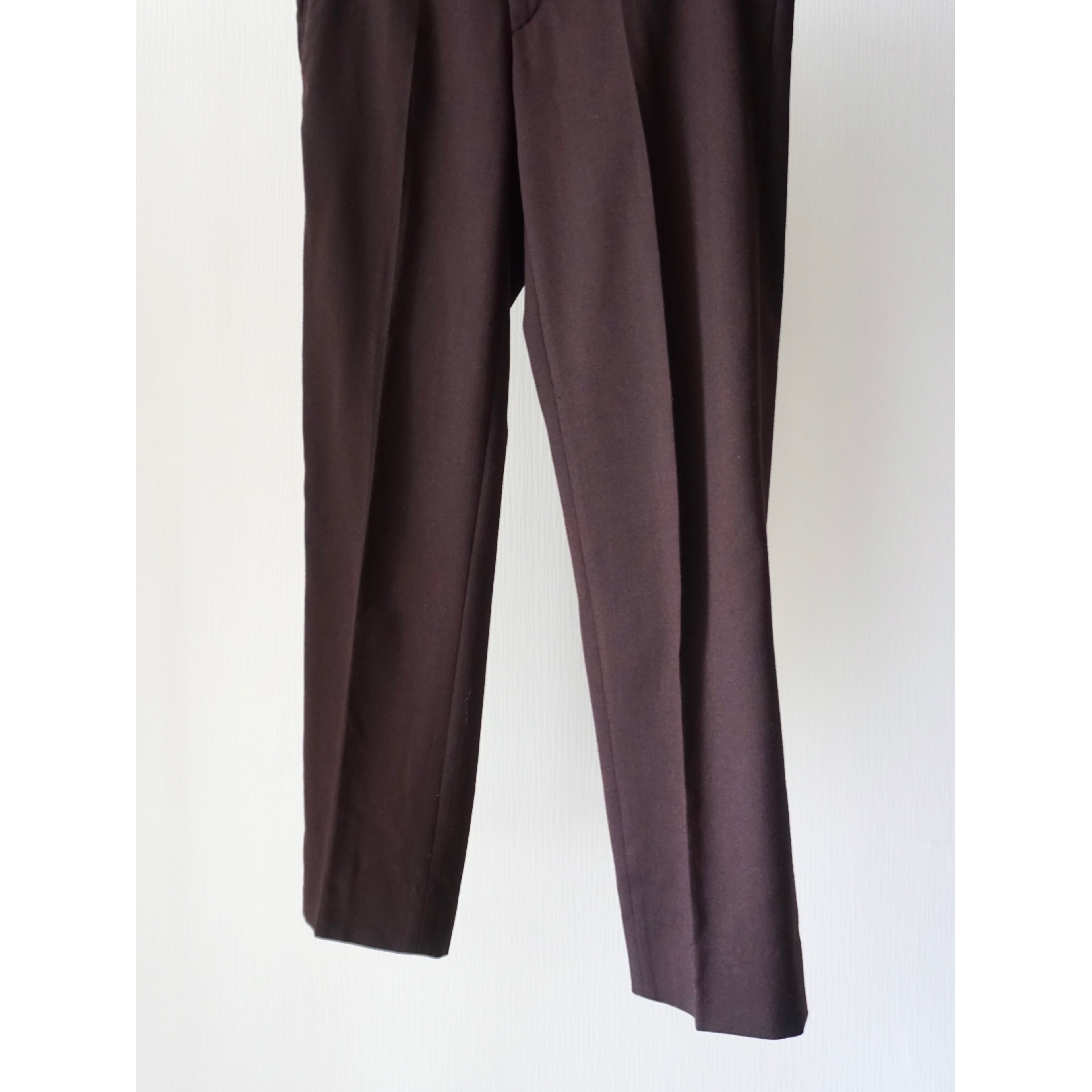 ブラウンとボルドーの中間の様な絶妙な色味に素材はおそらくサマーウール。