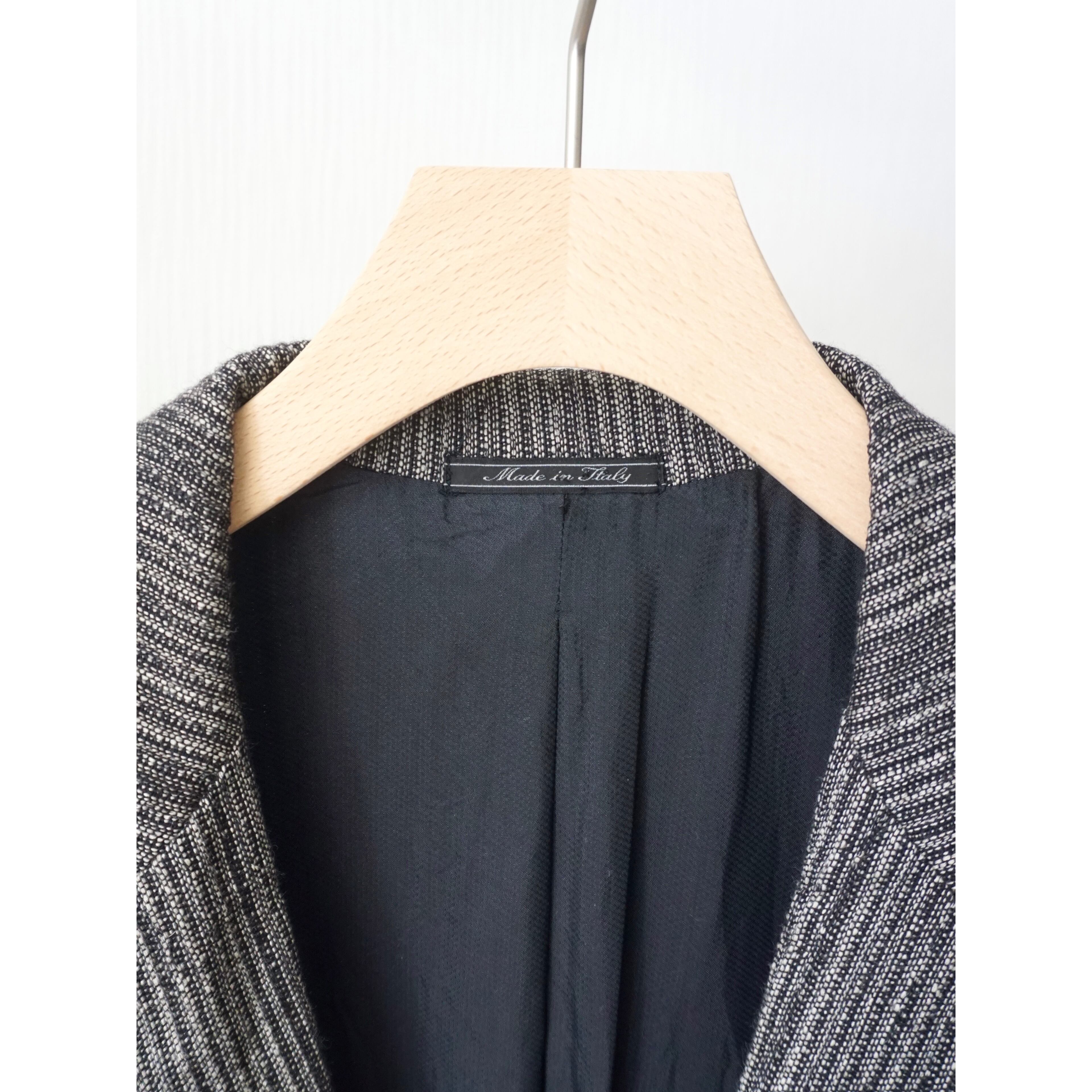 起毛感は無く、サラッとした肌あたりに軽く柔らかな生地。内側には滑らかなアセテート?生地が付くので着脱の際もストレス無く、春に気持ち良く羽織れる一着となります。