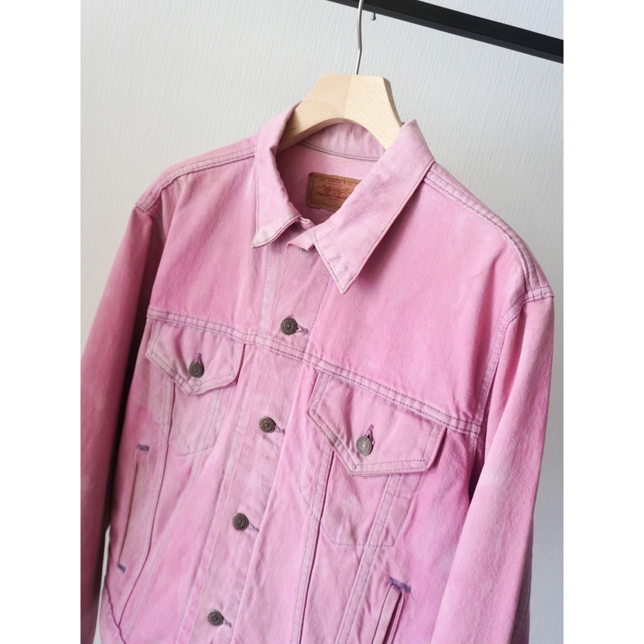 1980s vintage "Levi's" 70506 pink overdye denim tracker jacket made in USA