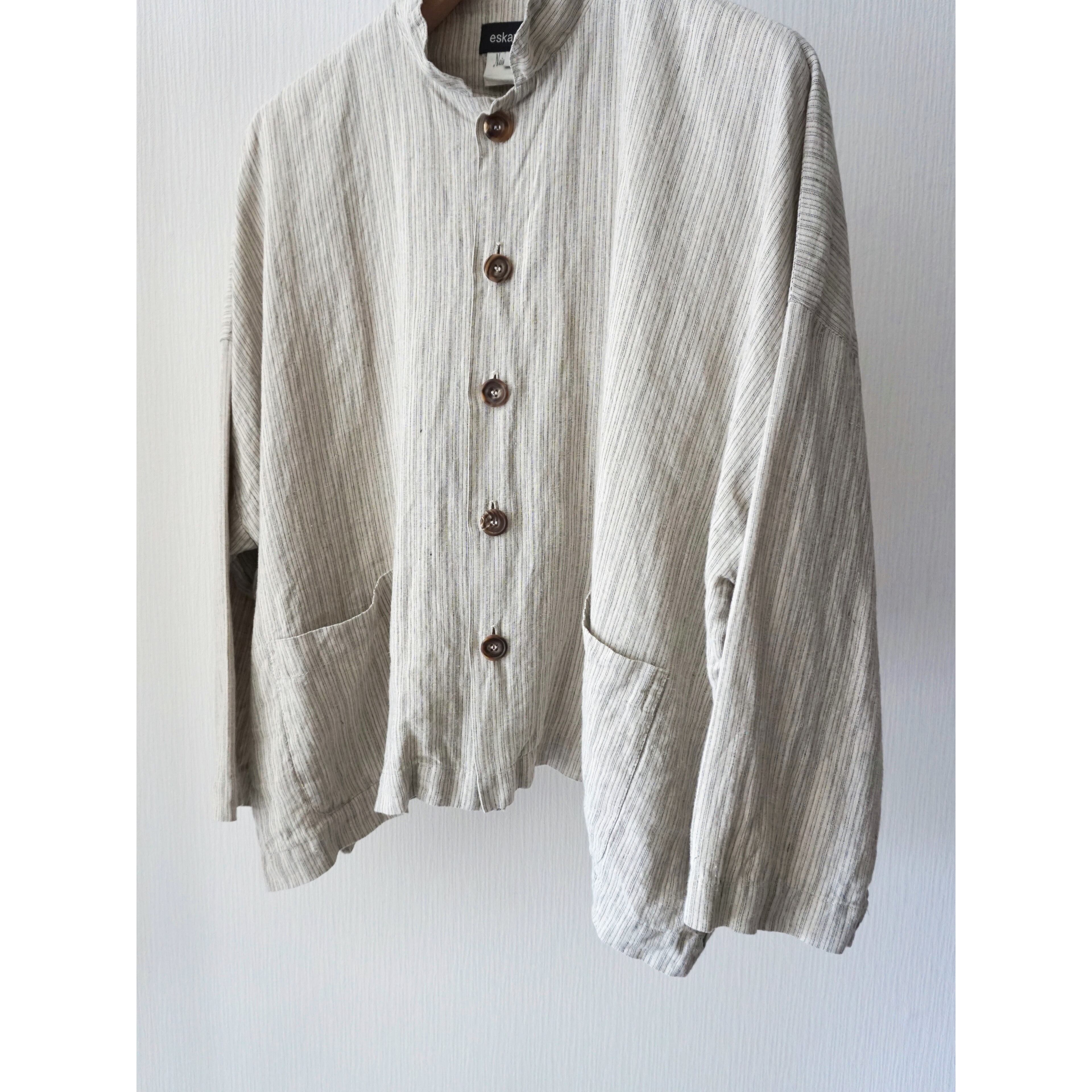 スタンドカラーリネンシャツ