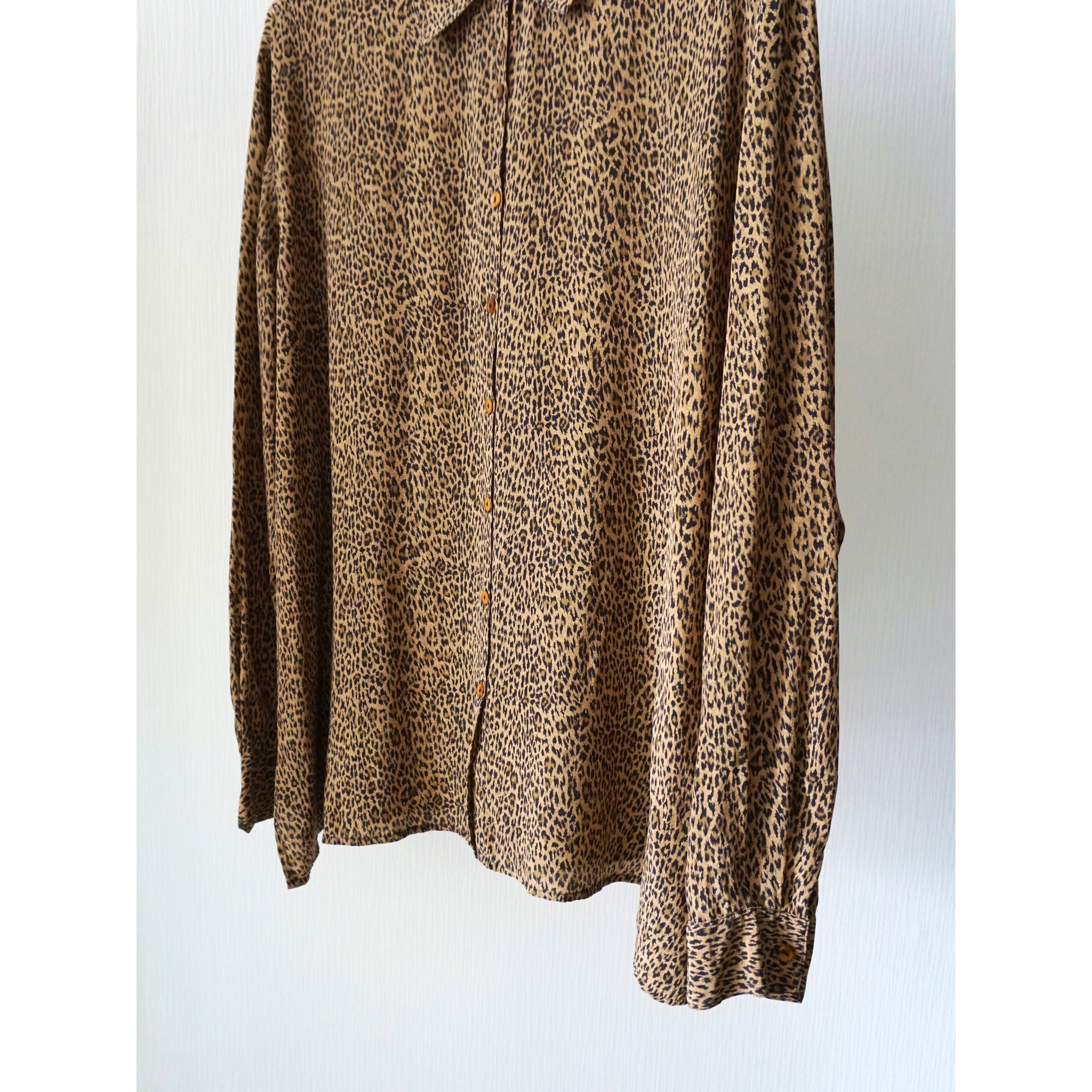 1990s 100% silk leopard pattern shirt