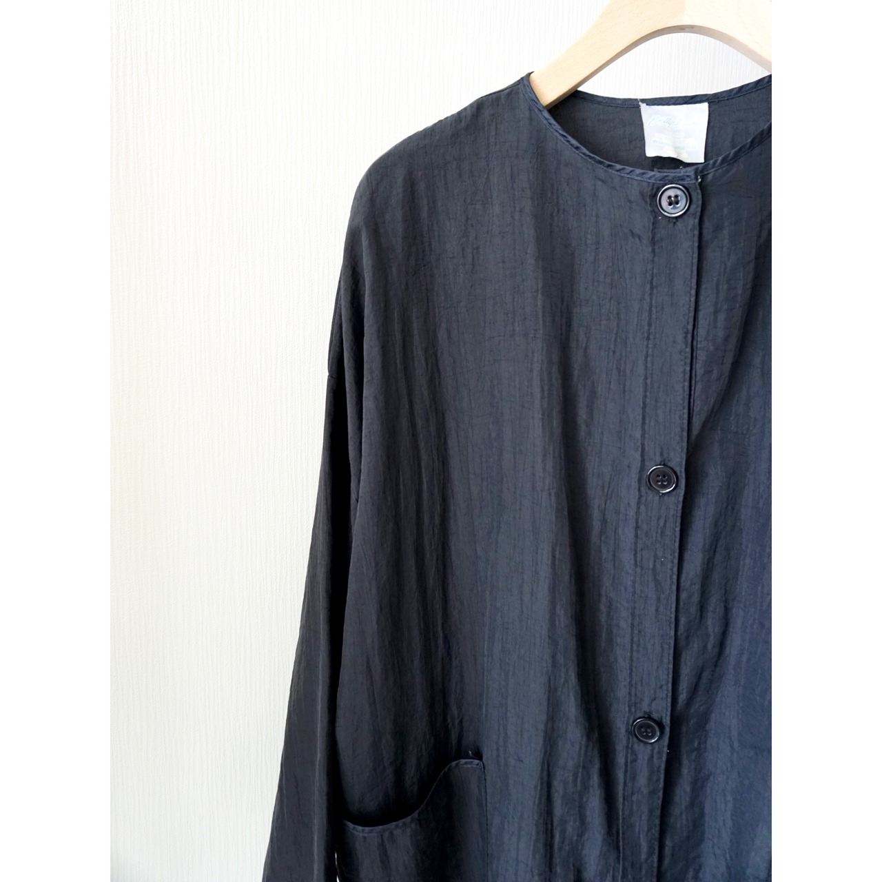 スッキリとしたノーカラー仕様で、フロントはボタンで開閉、ダブルポケットの付くミニマムなデザイン◎