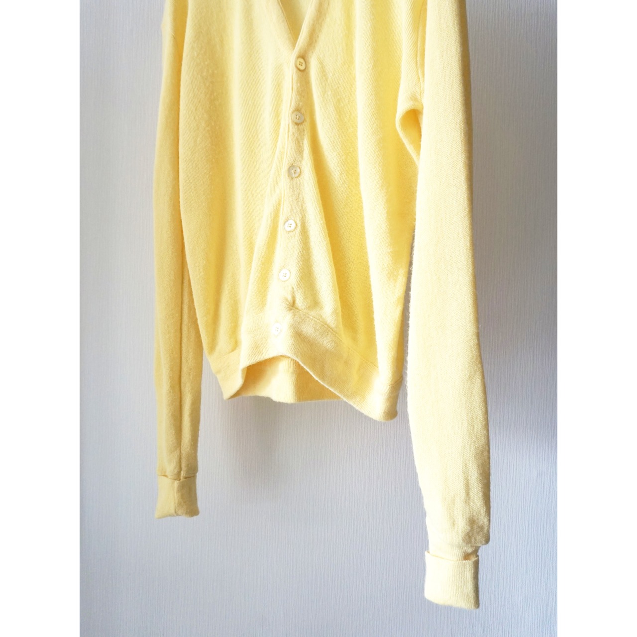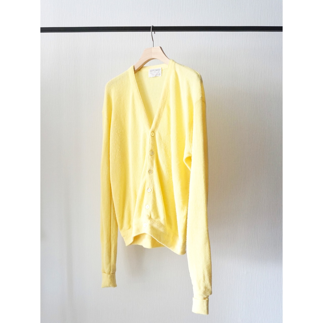 1980s vintage lemon yellow color orlon acryl knit cardigan made in USA