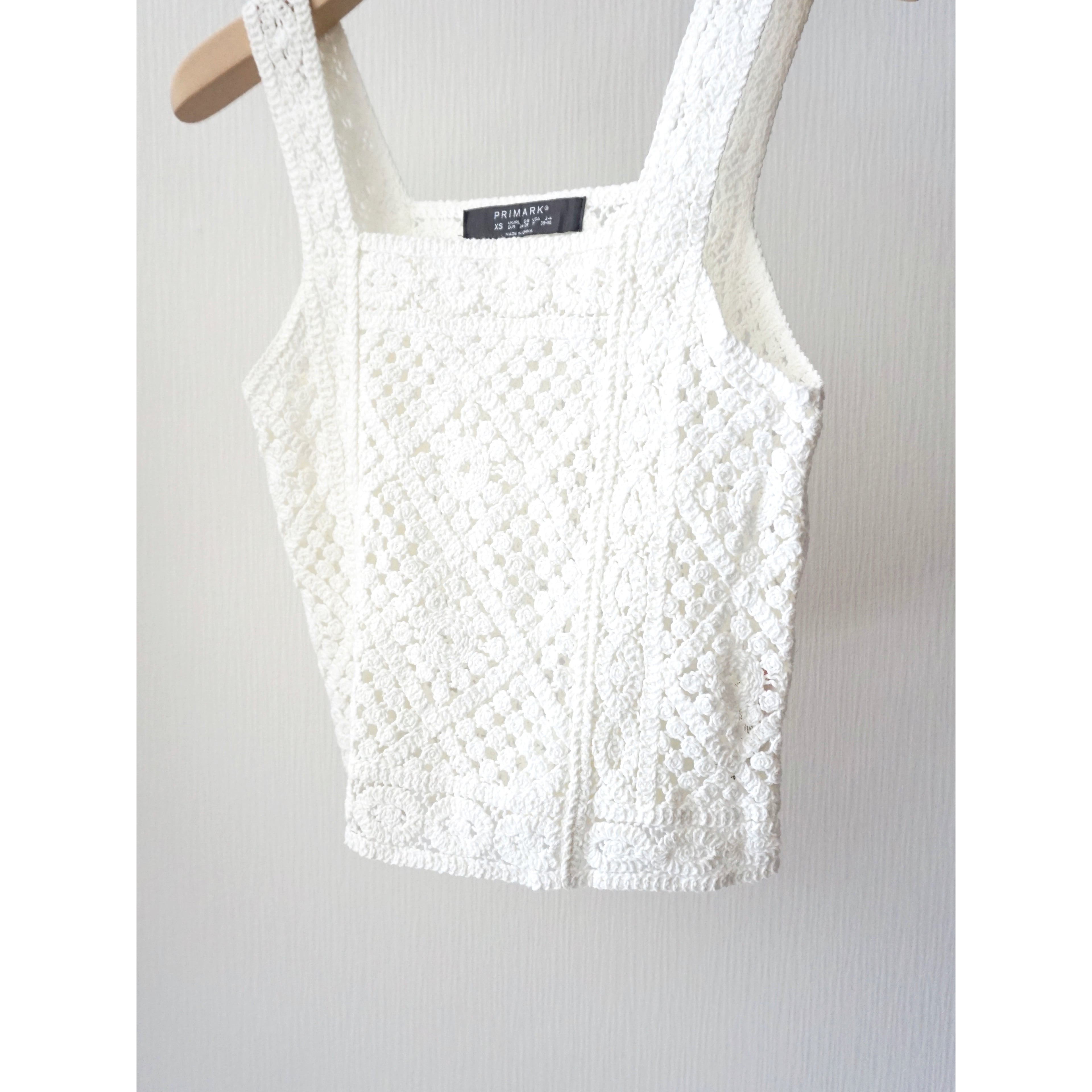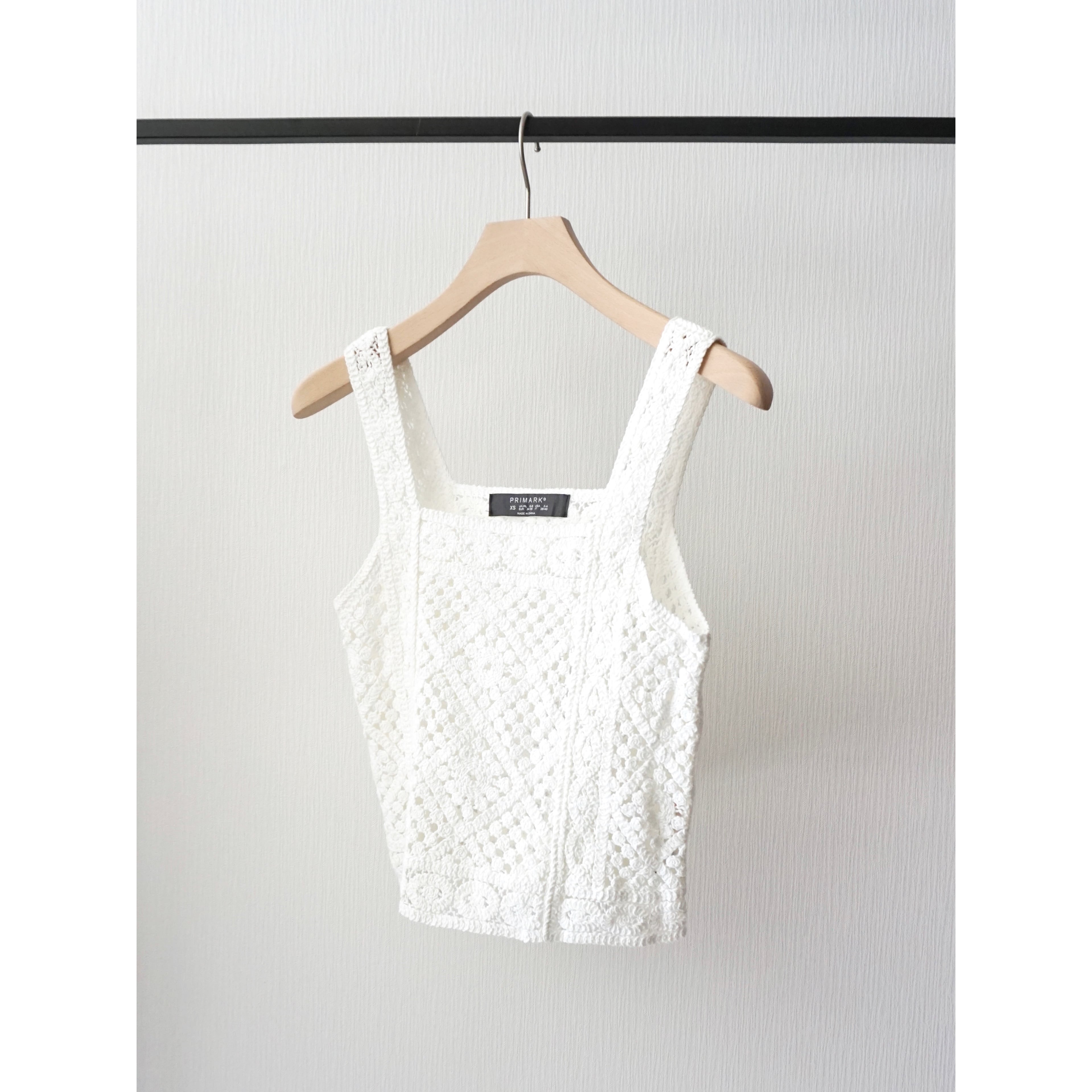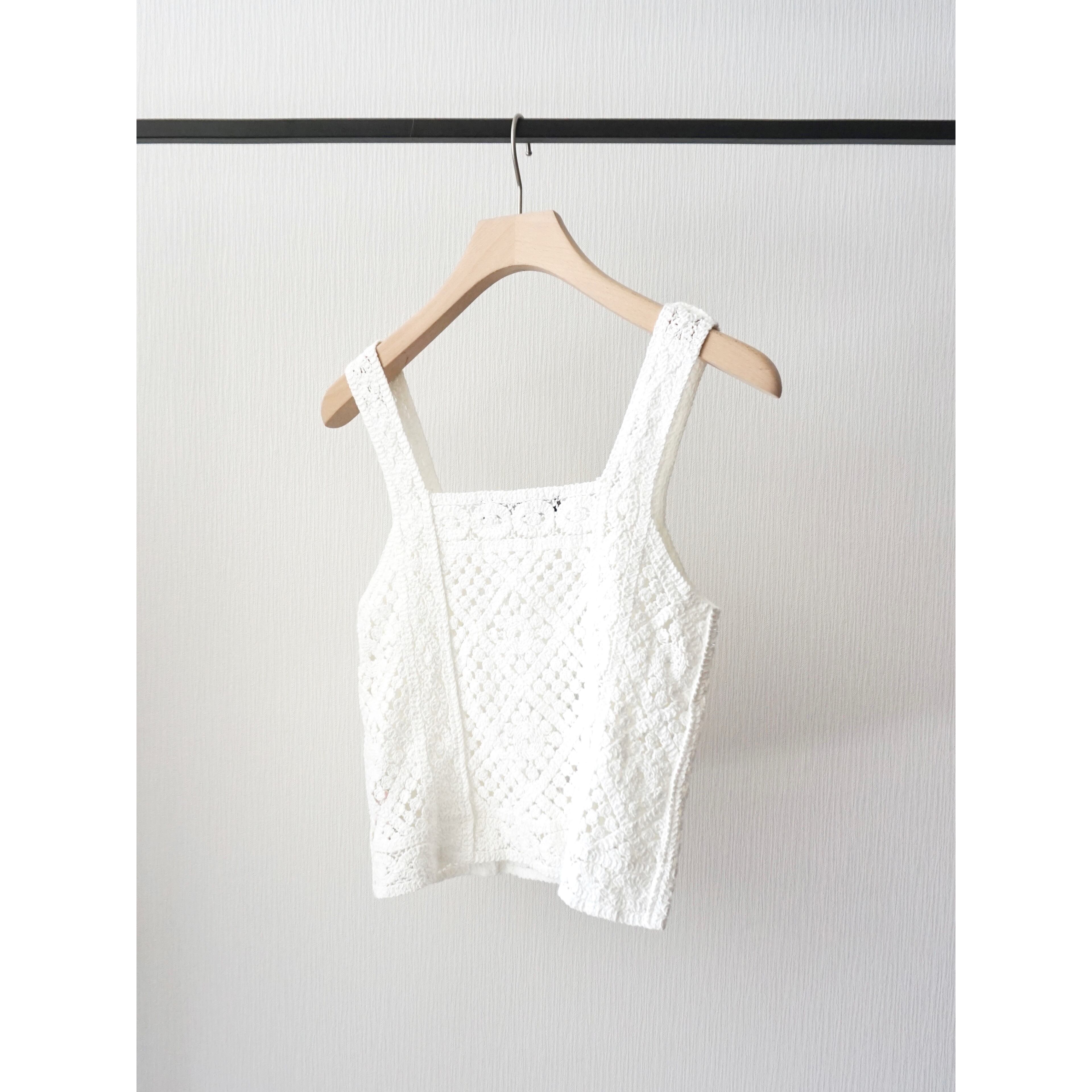 春夏らしいクロシェ編みのニットビスチェ。