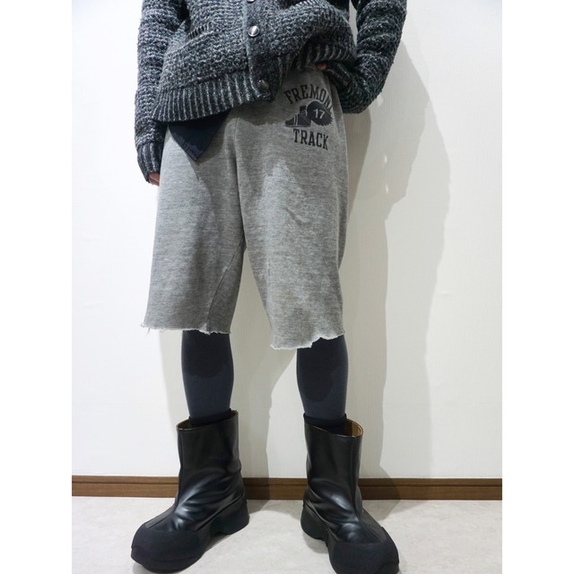 1970年代、USA製金タグラッセルのスウェットパンツ。 前所有者によりショーツに裾がカットオフされた一本です。 グレーボディにブラックラバーで三段、ウィングフットの入る最高なプリント! ウエストはドローコードがつきフリーサイズ的にほぼどなたにもオススメな一本です☺︎ この時期にもハイソックス、ブーツ、パンツレイヤード等で積極的に穿きたいショーツ。 とてもオススメです♪ お好きな方は是非この機会に 【ブランド】 Russell Atheletic 【カラー】 グレー、ブラック (※お使いのモニター環境により、画像の色味が実物と異なって見える場合がございます。) 【素材】 コットン、ポリエステル、レーヨン 【サイズ】 表記サイズ : M ウエスト最大 100cm / 股下 33cm / 総丈 56cm / 裾幅 27cm ※測定における若干の誤差はご了承下さいませ。 着用モデル : 171cm 52kg 【状態】 ヴィンテージ スウェット製品特有の裾カットオフ跡、使用感等ございます。どれも製品特有の風合いとしてご理解ある方のみご注文お願いいたします。 ※尚、実店舗でも販売しております為、掲載されていても時間差で在庫切れになる場合がございます。予めご了承下さい。